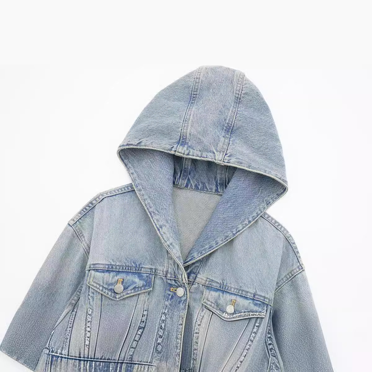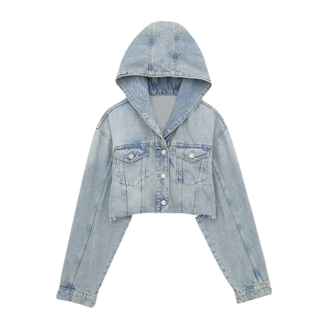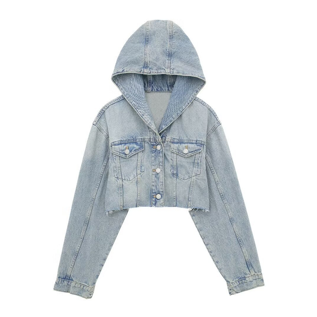 | nameOriginal | 2024 spring new European and American cross-border women's street style hooded short casual Denim jacket long sleeve jacket |