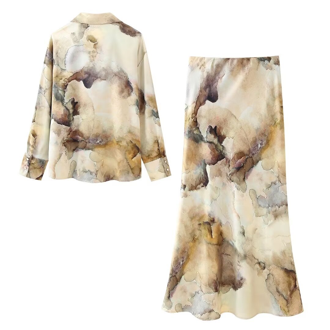 | nameOriginal | 2024 spring new European and American cross-border Women's tie-dyed silk satin textured shirt + skirt suit w03 4704 |