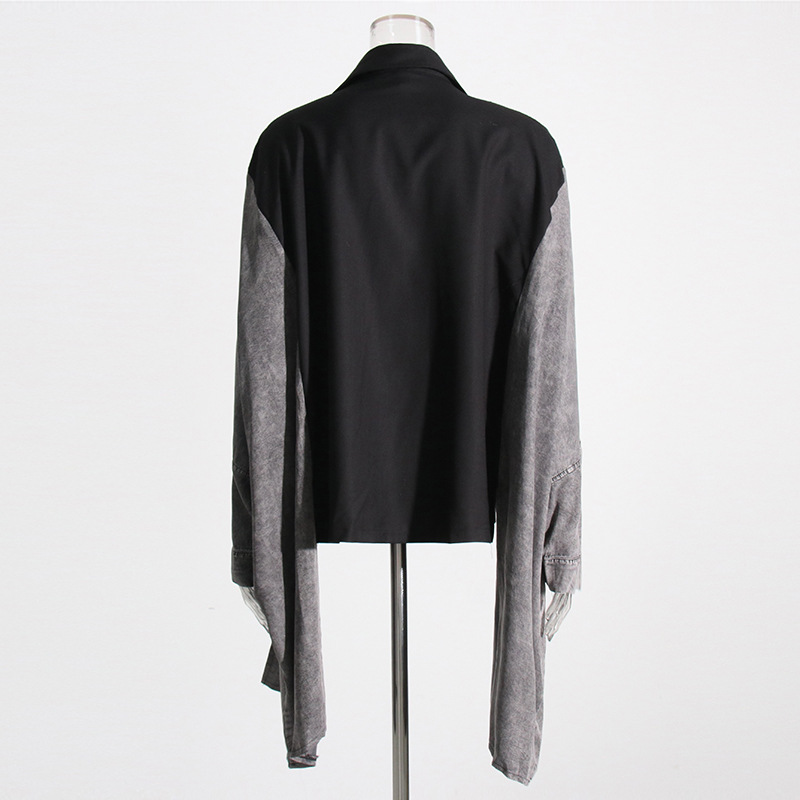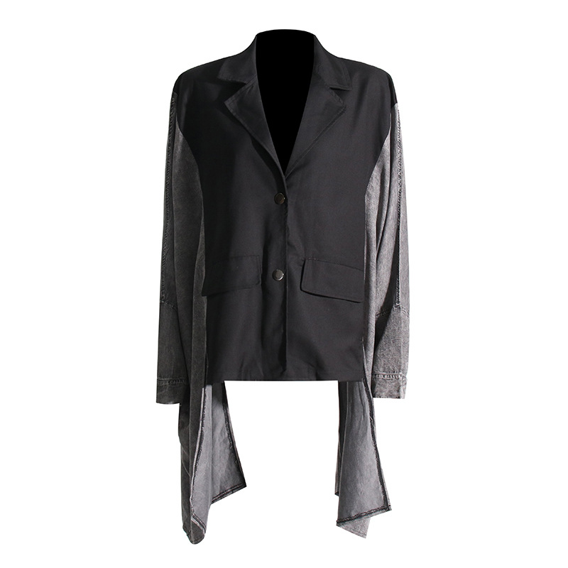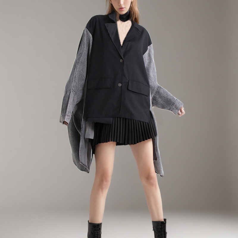 2024 spring new European and American fashion personalized street style V-neck stitching batwing sleeve design suit jacket fashion