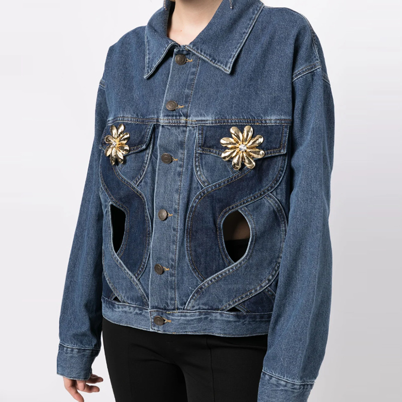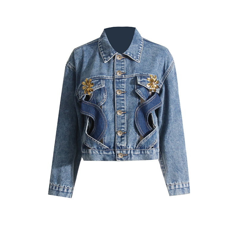 | nameOriginal | 2024 Spring New European Hollow-out Jacket Top Personalized Design Sense Flower Fashion Casual Denim Jacket for Women |