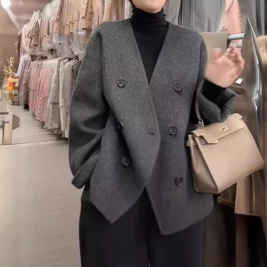 | nameOriginal | 2024 spring new European style V-neck double-sided cashmere coat women's short small high-grade woolen coat |