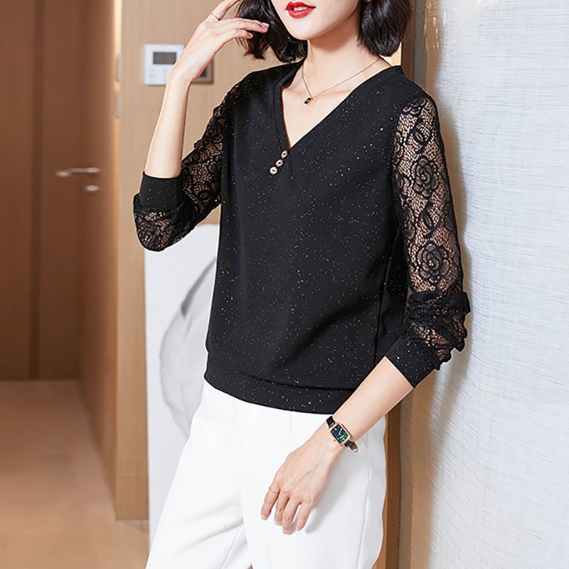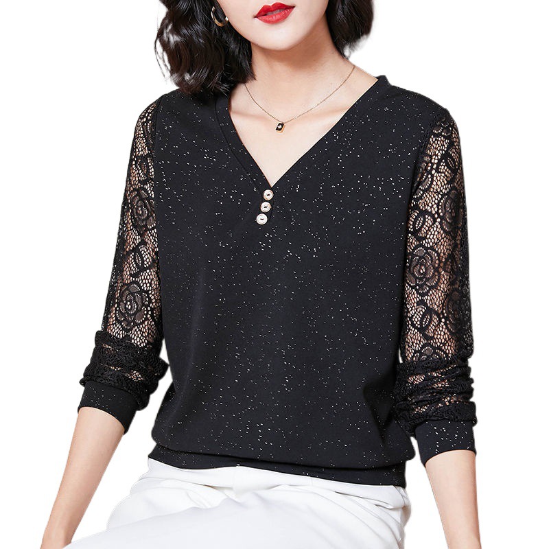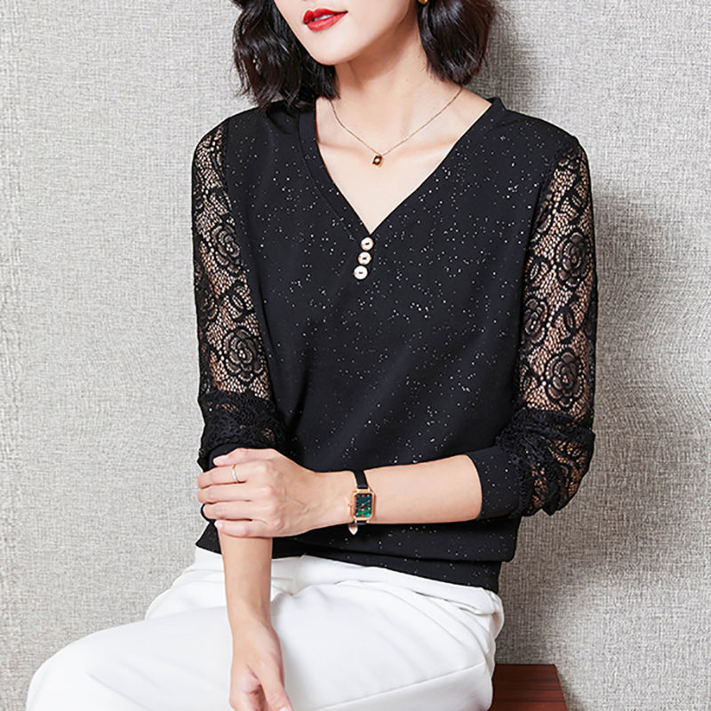 2024 Spring New Fashion Loose Western Style Lace Shirt for Middle-aged Mothers Spring and Autumn Base Shirt Top for Women