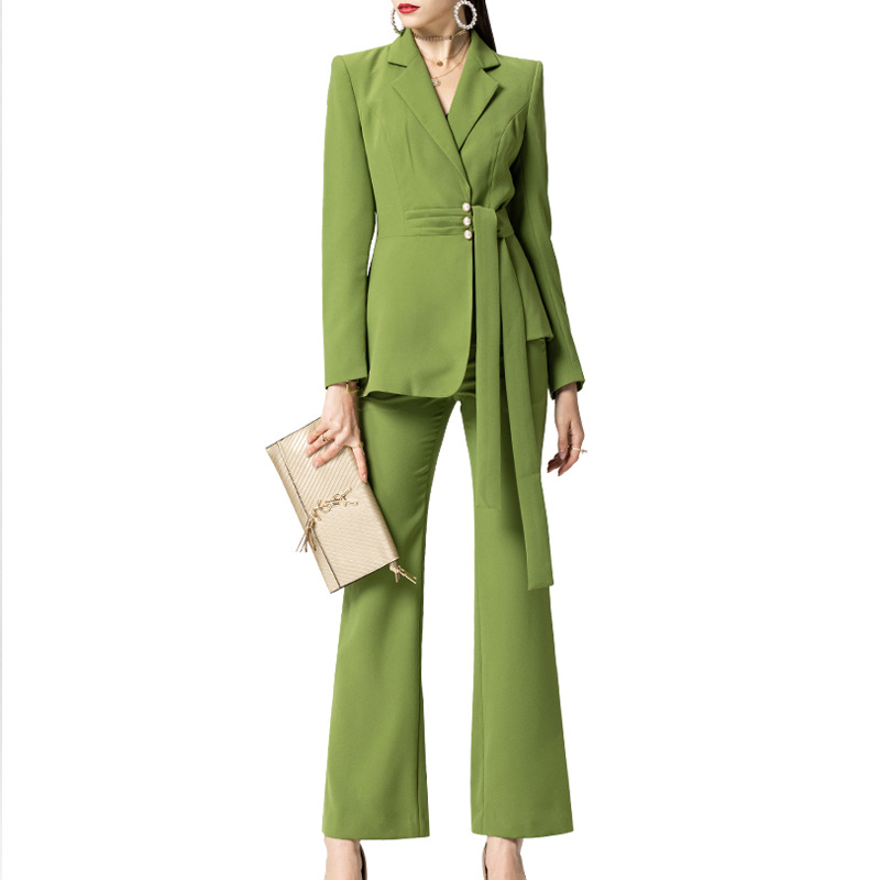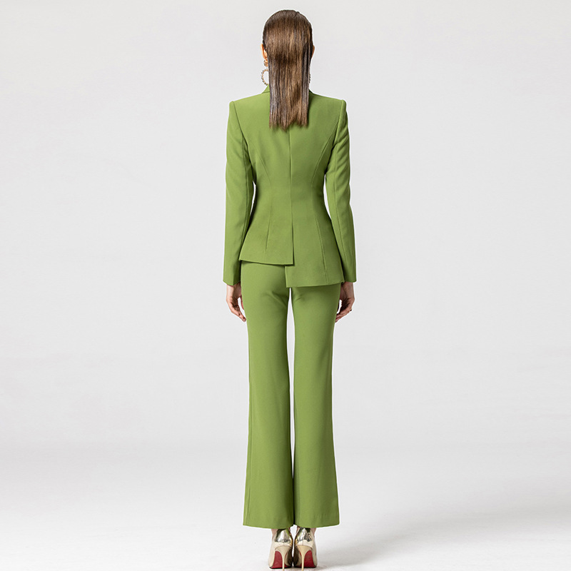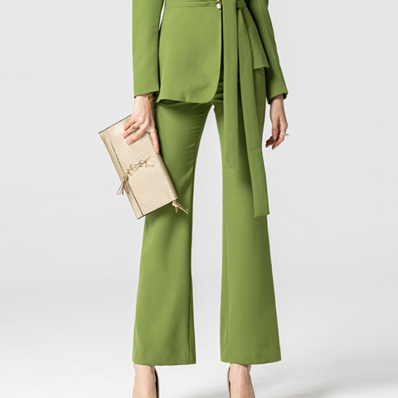 | nameOriginal | 2024 spring new fashion professional suit temperament slim slimming formal wear flared pants green two-piece set suit |