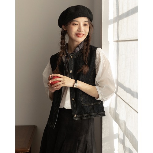 | nameOriginal | 2024 Spring New Japanese Style Retro Round Neck All-match Slim-fit Short Stacked Vest Women's Design Top |