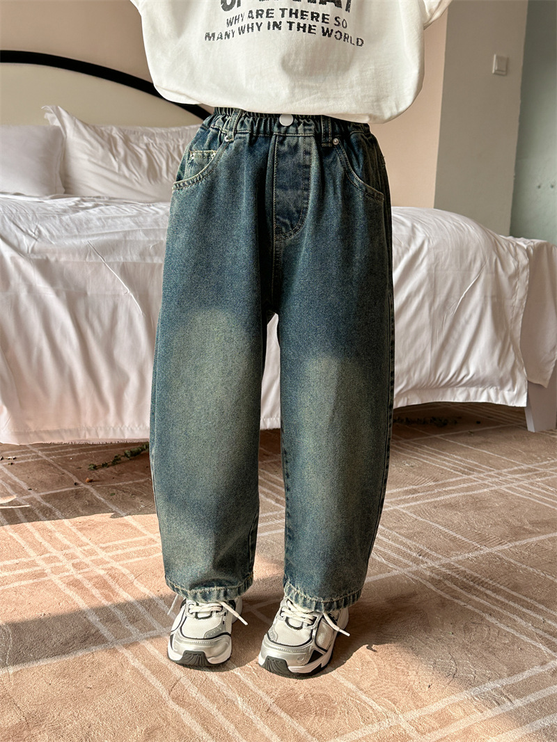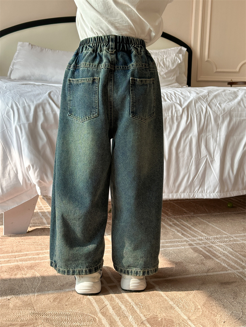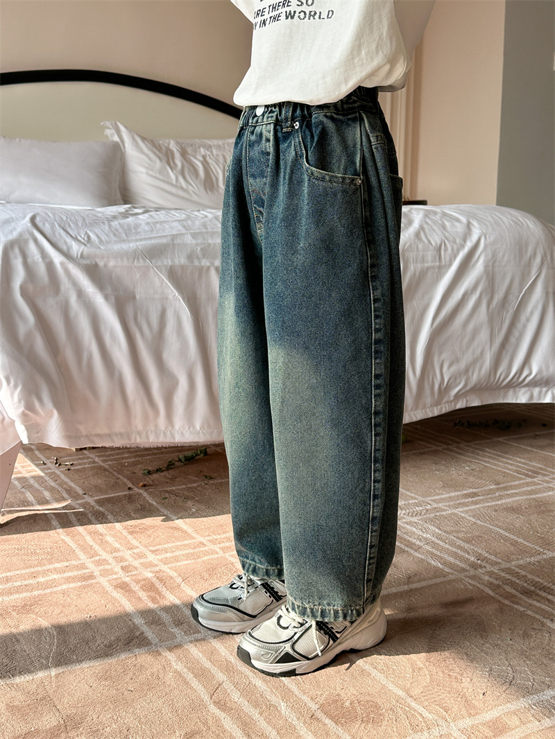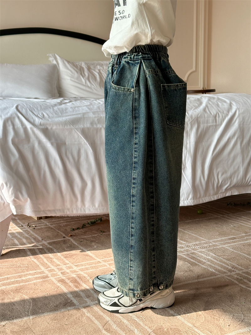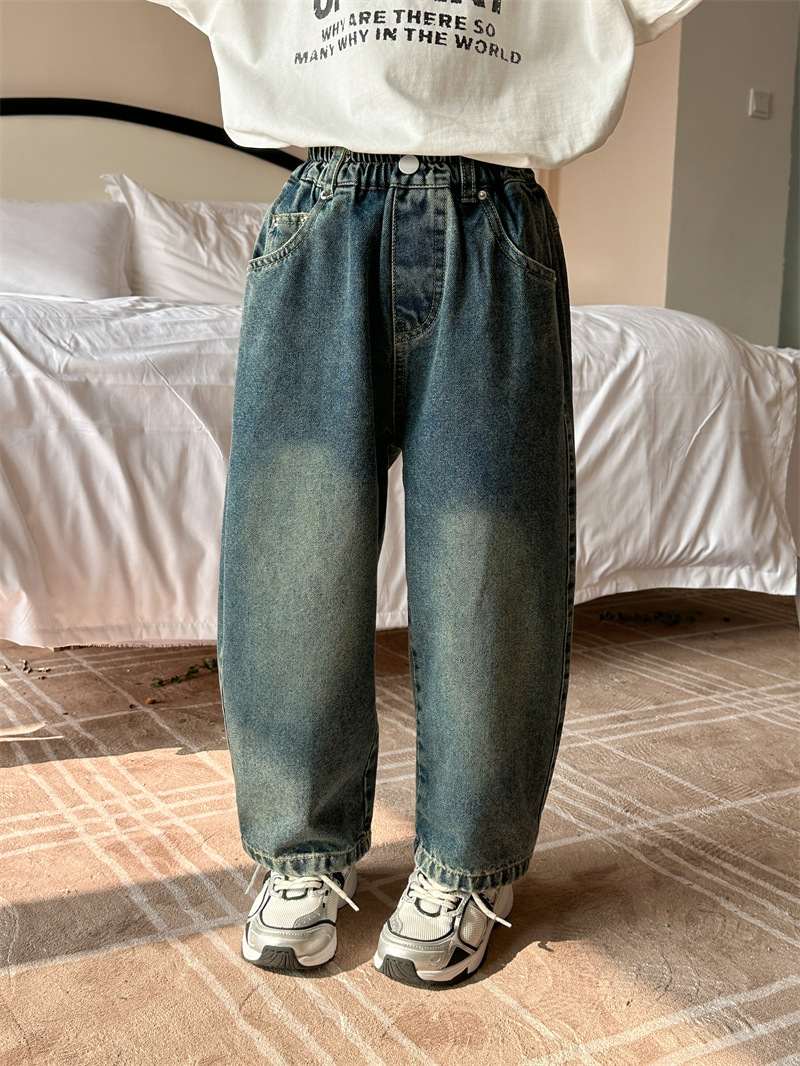 2024 spring new Korean style children’s jeans boys’ ankle-opening hidden buckle casual trousers fashionable all-matching jeans