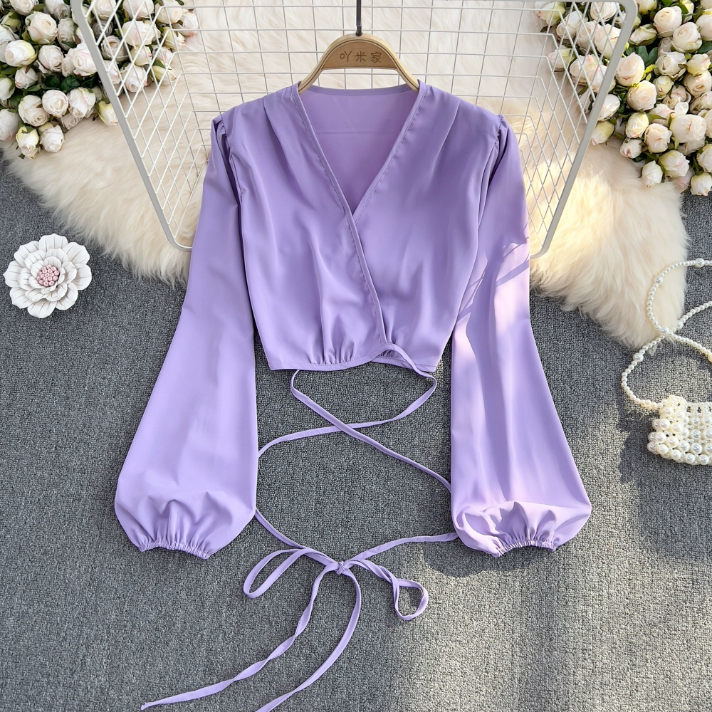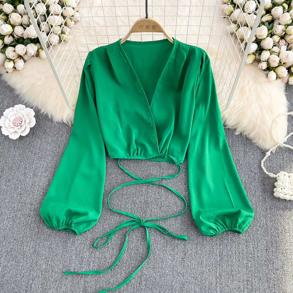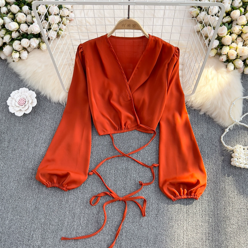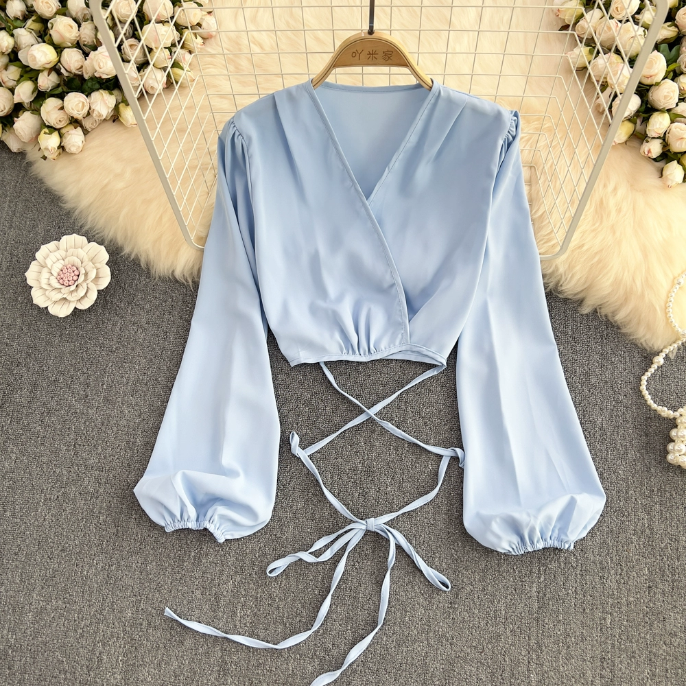 | nameOriginal | 2024 Spring New Korean Style Deep V Neck Puff Sleeve Slim Shirt Women's Fashionable and Chic Short Navel Exposed Top |