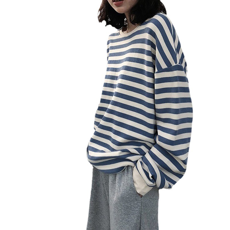 | nameOriginal | 2024 spring new Korean style women's striped long-sleeved T-shirt women's top student thin loose round neck sweater women |