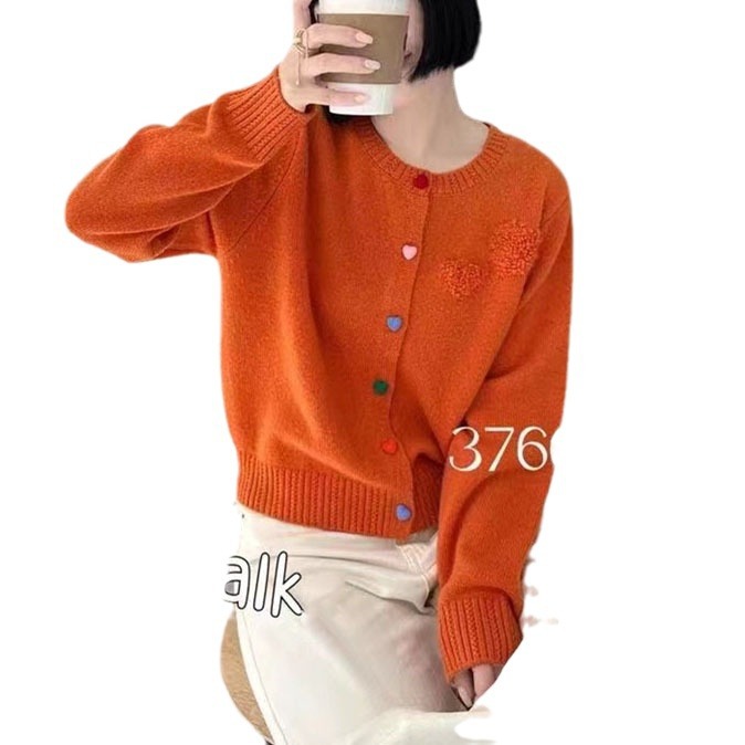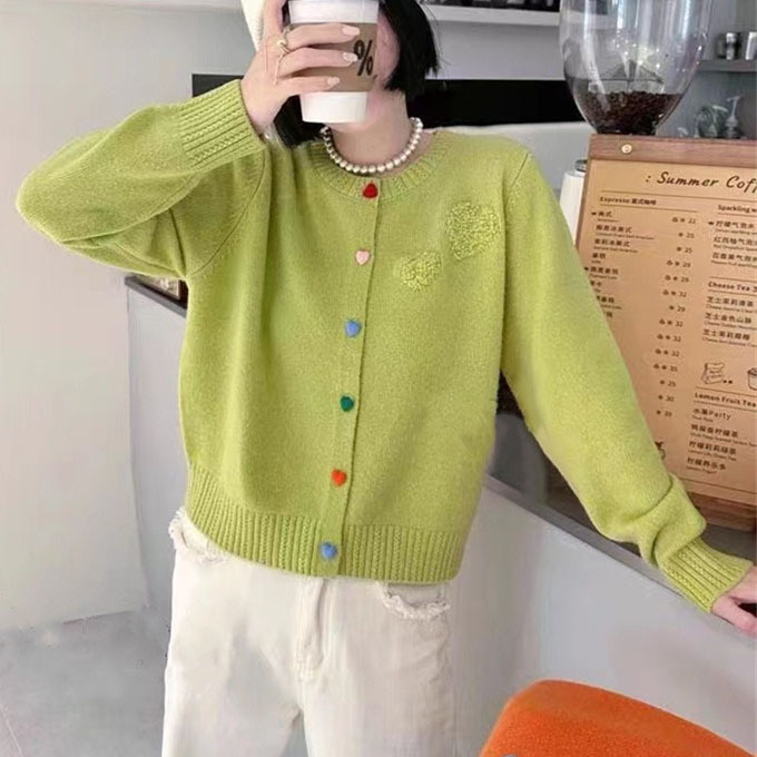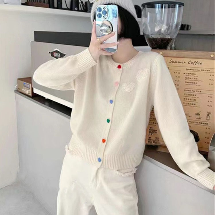 2024 spring new round neck colorful love buckle knitted cardigan coat sweet soft glutinous age-reducing sweater women’s top