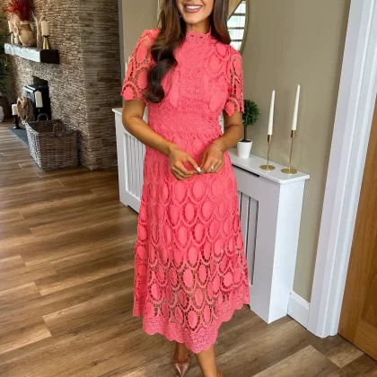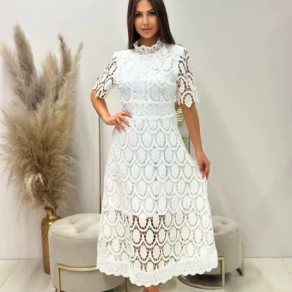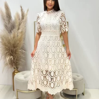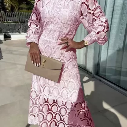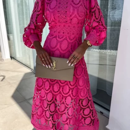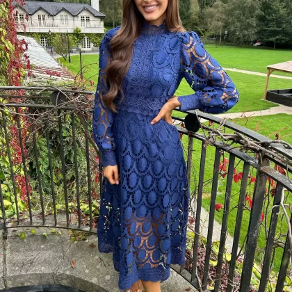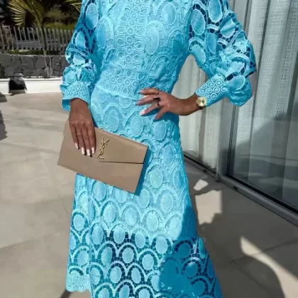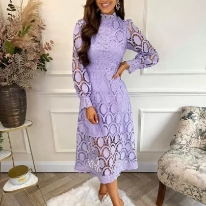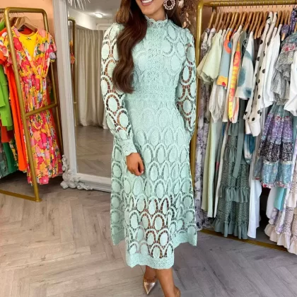 | nameOriginal | 2024 Spring New Style French Lace Stand Collar Puff Long Sleeve Waist Slim Dress Temperament European and American Long Skirt |