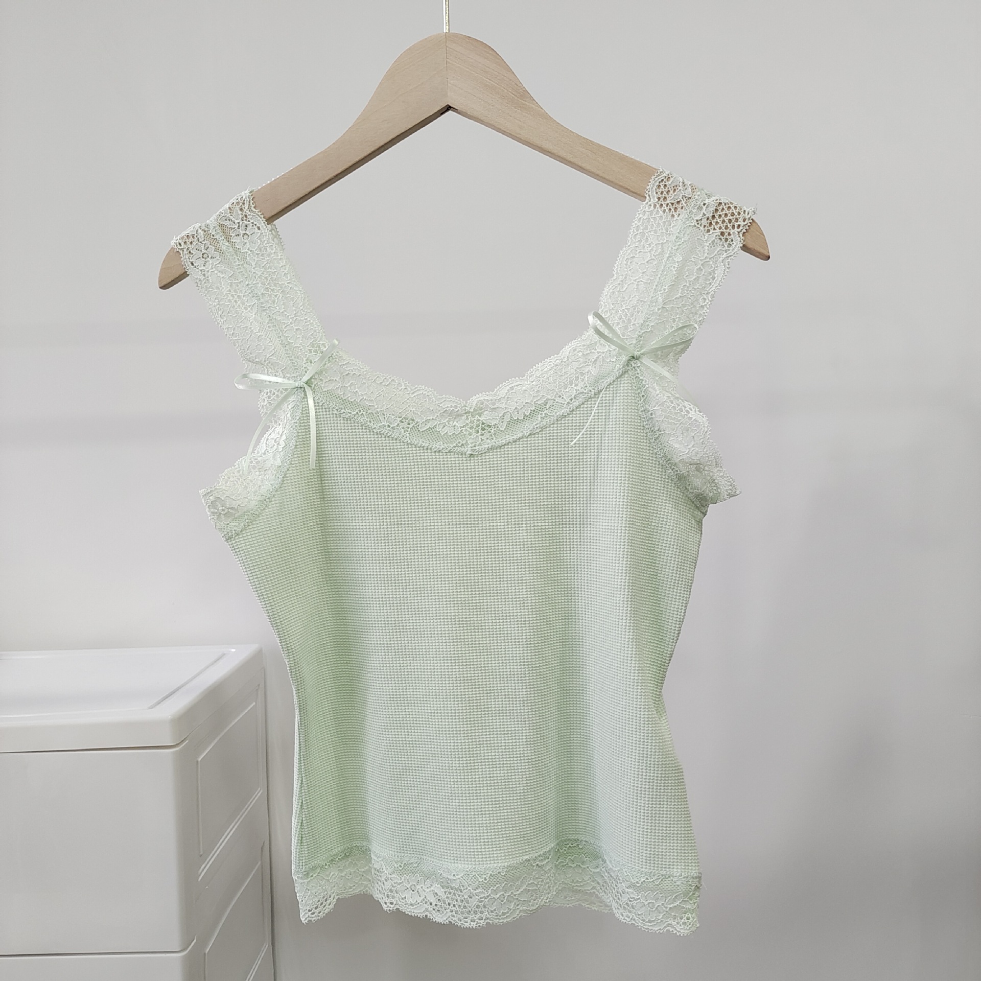 | nameOriginal | 2024 spring new sweet style waffle light color vest thin sling |