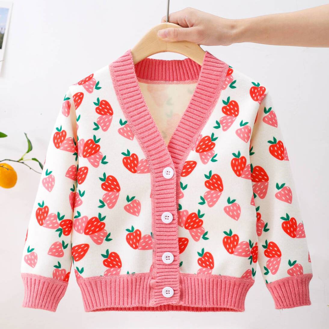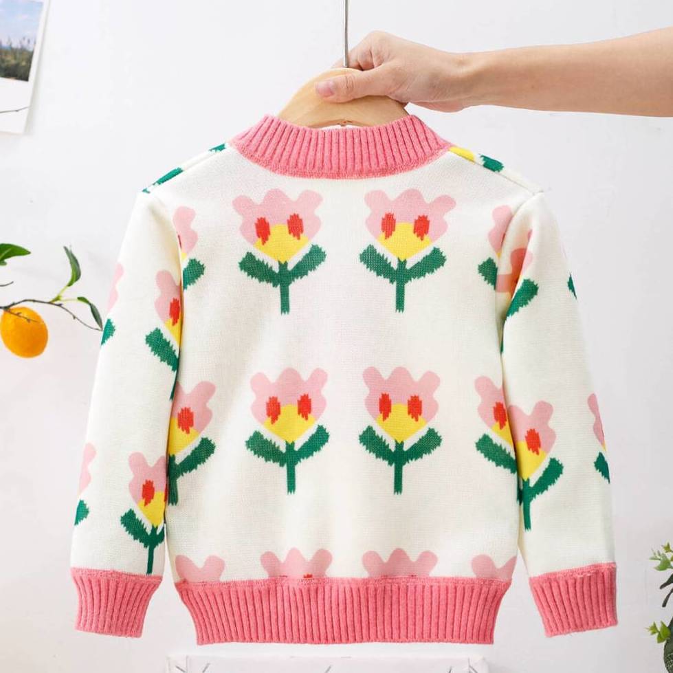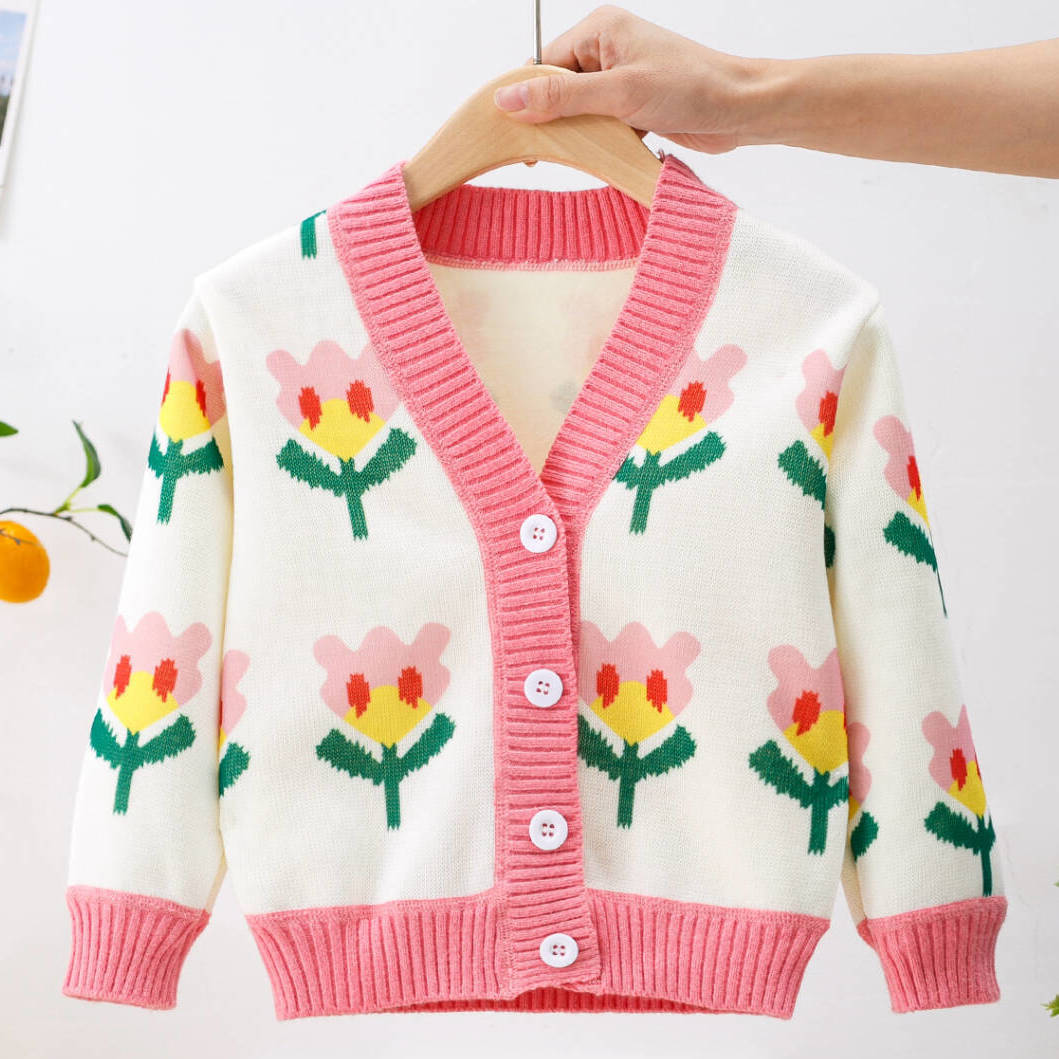| nameOriginal | 2024 Spring New V-neck Pink Flower Printed Girls Knitted Children's Western Style Sweater Coat Children's Top |
