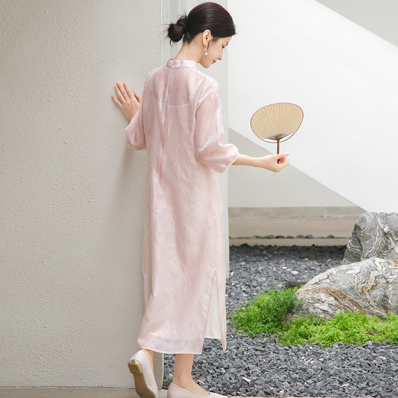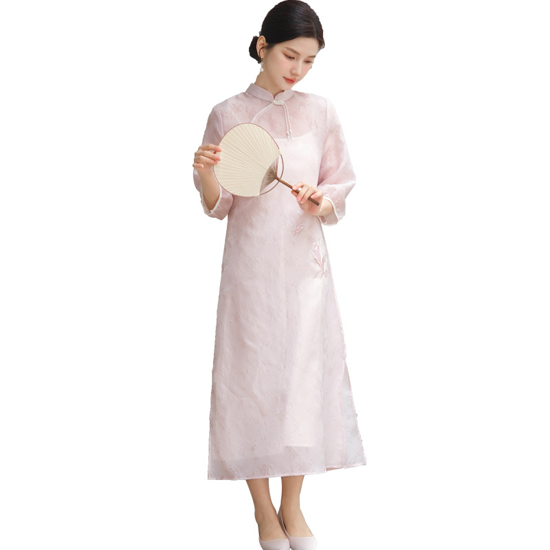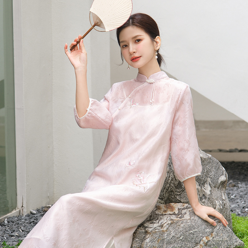 | nameOriginal | 2024 spring new women's clothing new Chinese jacquard embroidered stand collar dress modified Hanfu Tang suit midi dress |