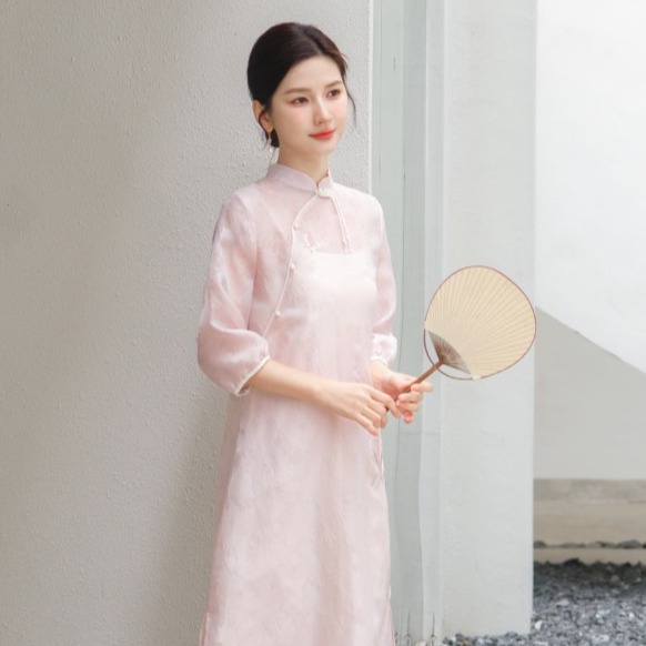 | nameOriginal | 2024 spring new women's clothing new Chinese jacquard embroidered stand collar dress modified Hanfu Tang suit midi dress |