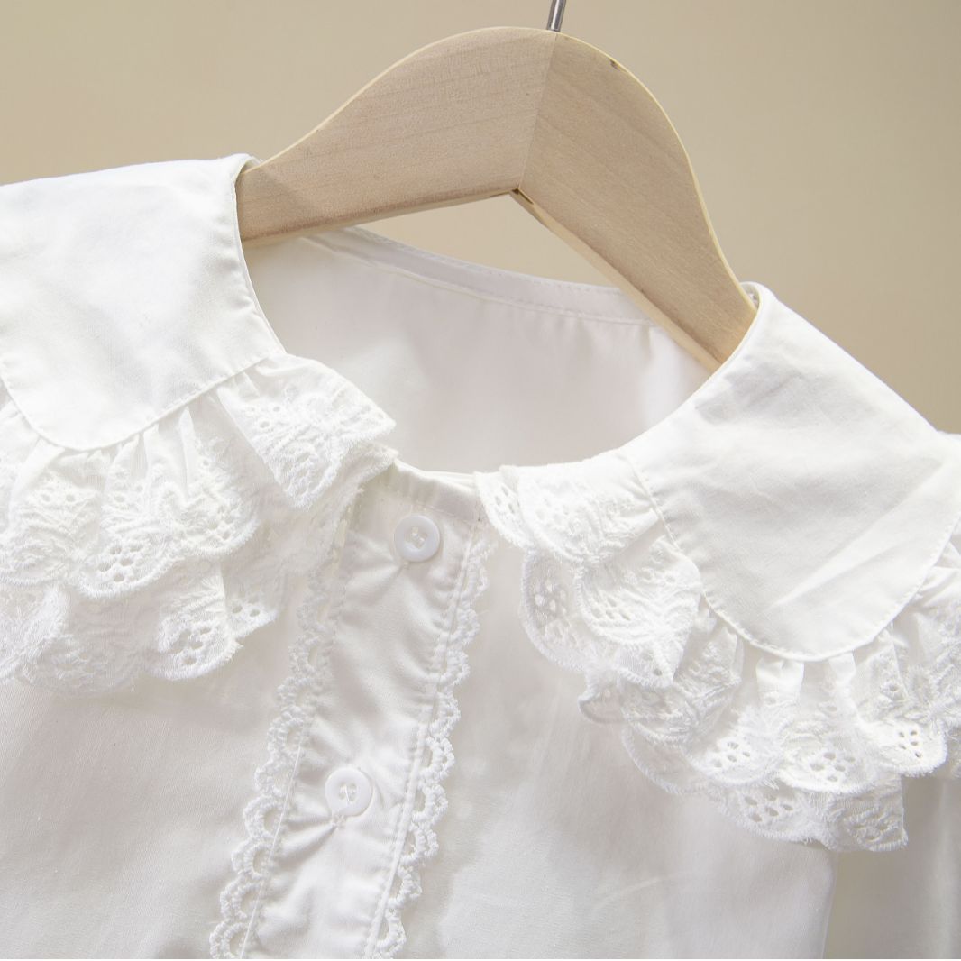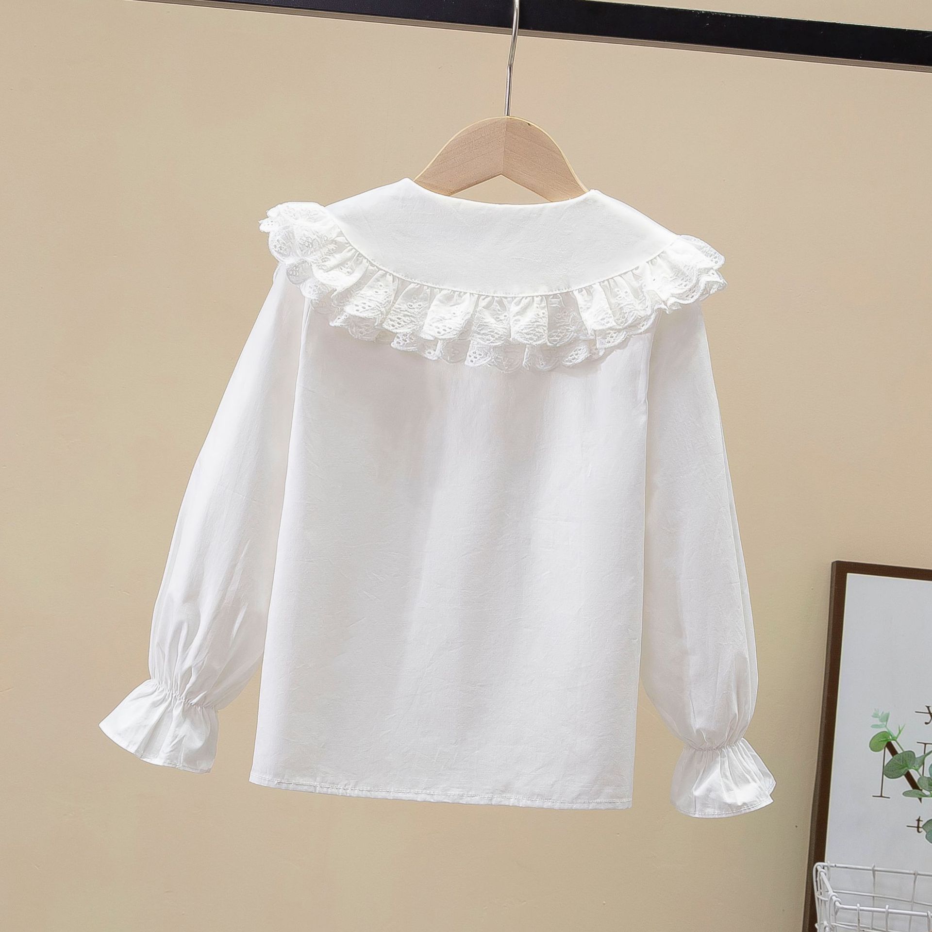 | nameOriginal | 2024 spring new women's medium and big children's white cotton long-sleeved shirt children's all-match lace doll collar shirt fashion |