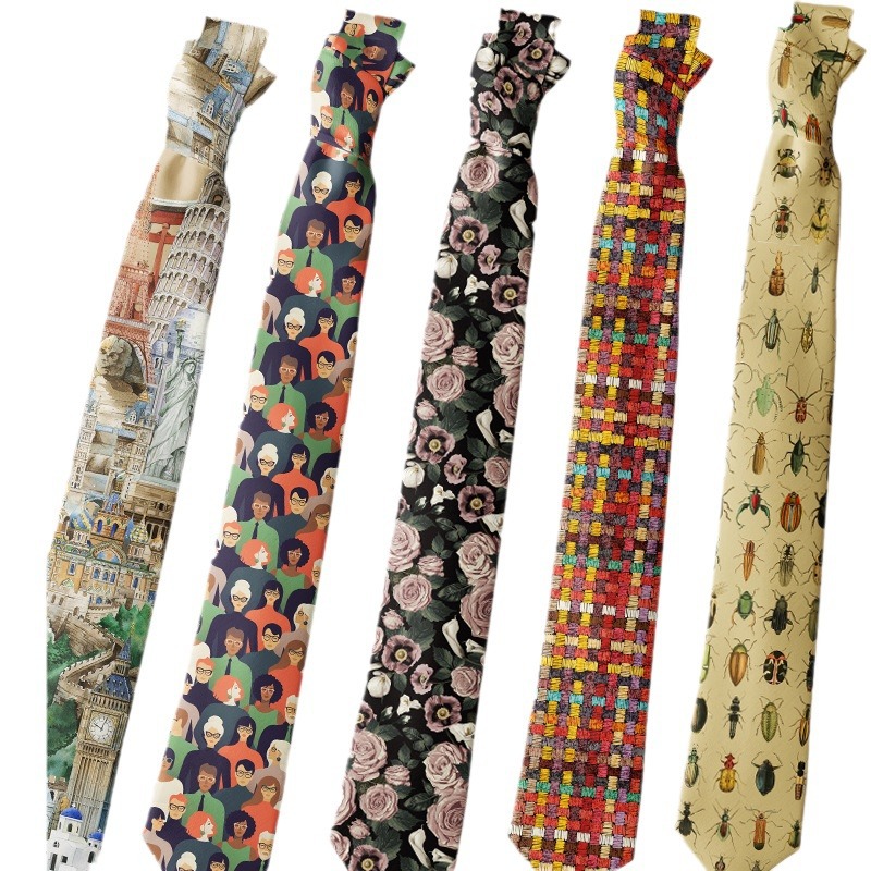 2024 spring original new 8cm printed tie retro ins men's and women's wide vintage casual animal tie