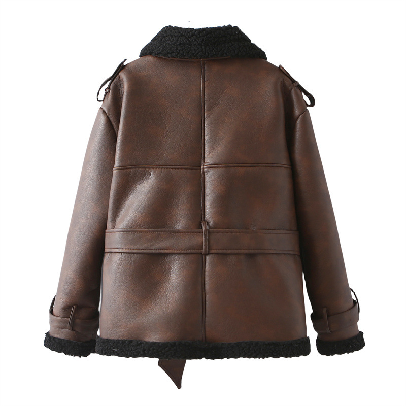 2024 Spring Vintage Strap Puleather Jacket Chic Lapel Lace Up Long Sleeve Street Motorcycle Jacket