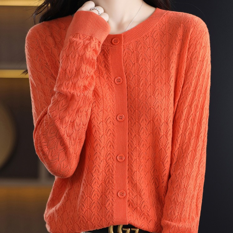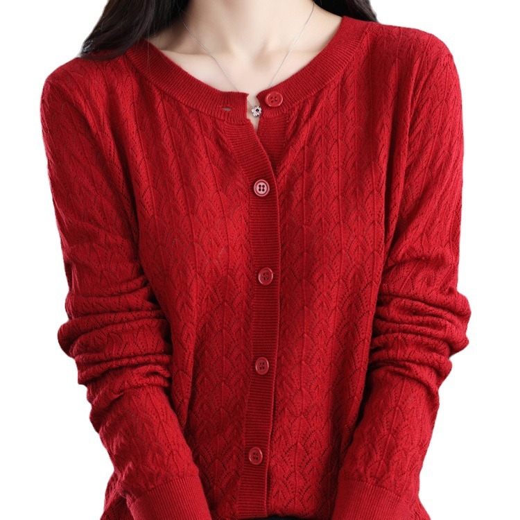 2024 spring worsted wool phoenix tail hollow knitted cardigan women's sweater coat low round neck top short outer wear