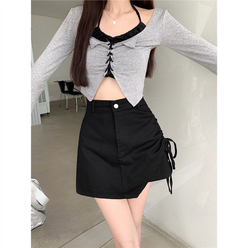 2024 Stretch Shorts Women’s Summer New Arrival Irregular Drawstring Skirt High Waist Slim-fit Skirt for Hot Girls