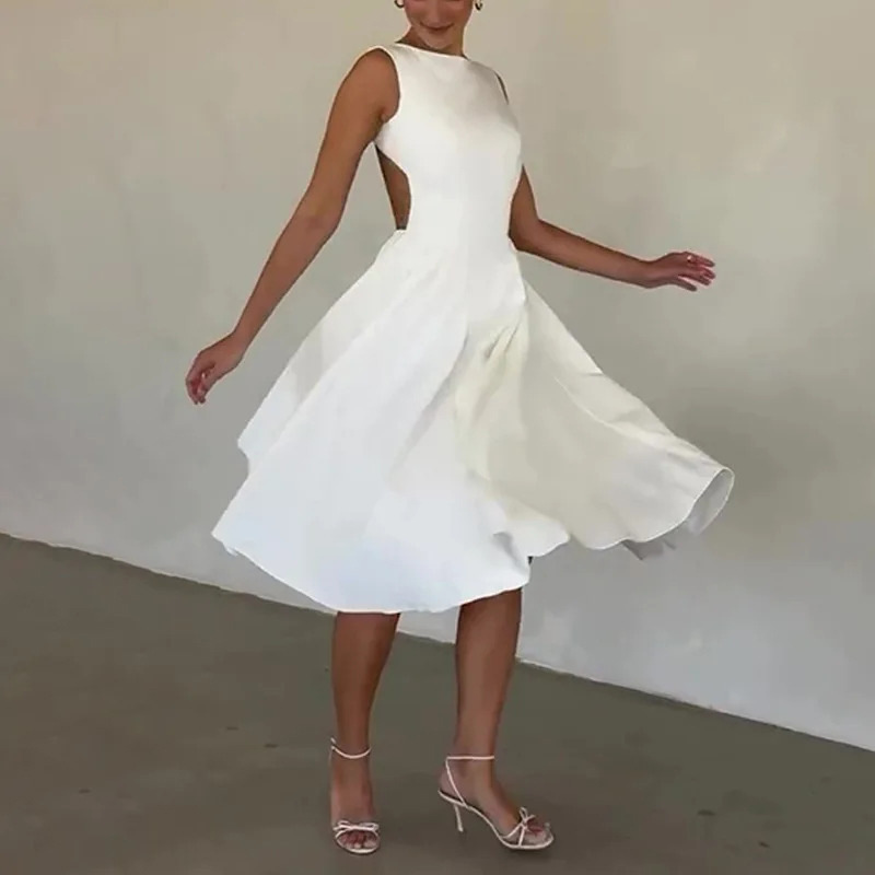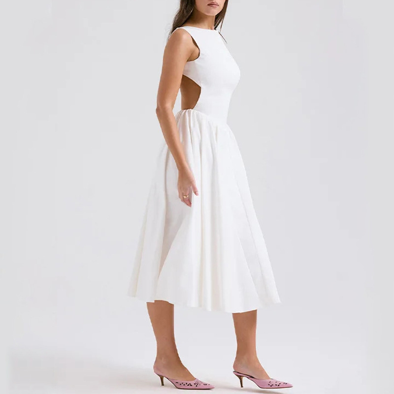 2024 Summer AliExpress European and American Women’s Elegant Sexy Backless Fashion Slim-fit Round Neck Sleeveless Solid Color dress