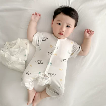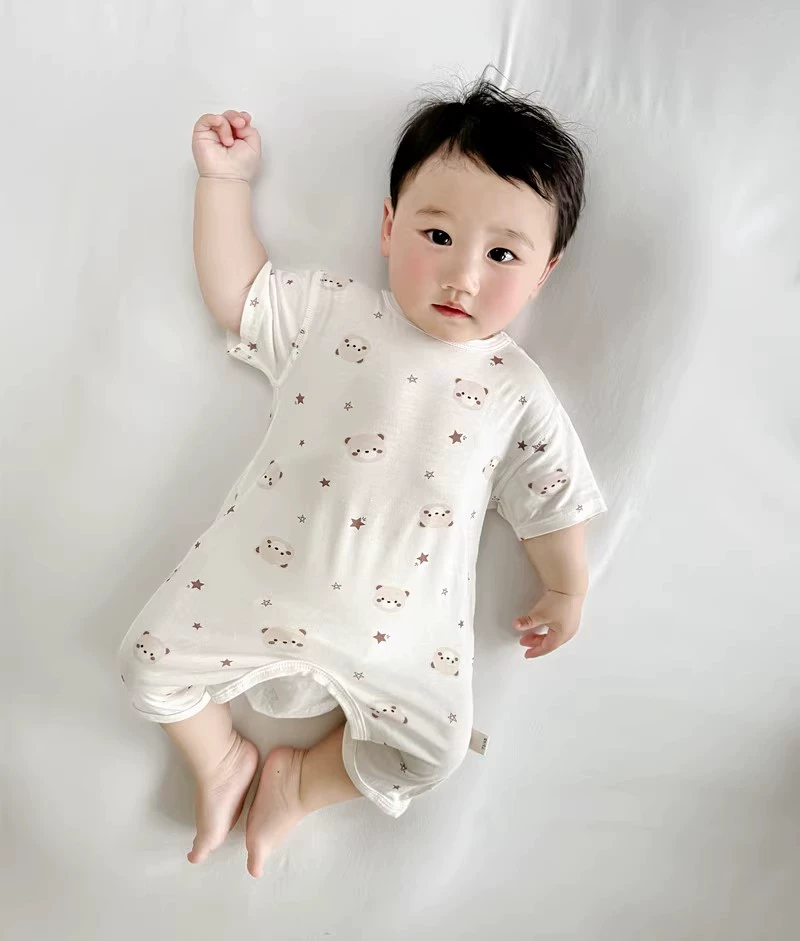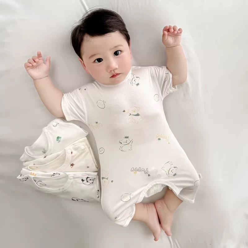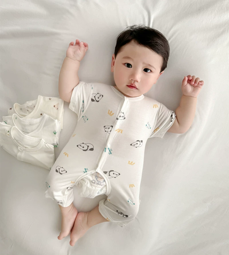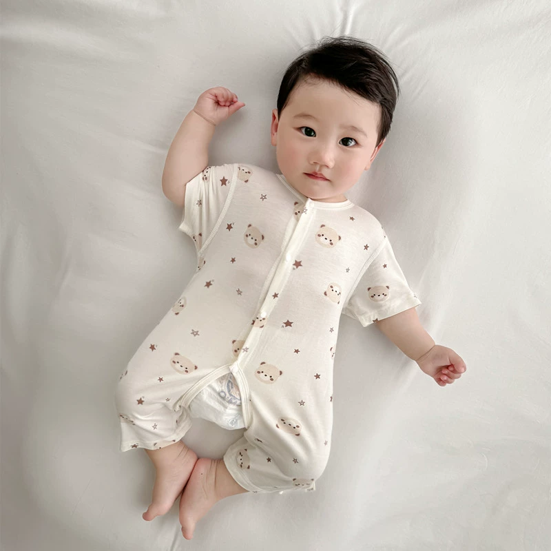 2024 Summer Baby Clothes Thin Boneless Modal Open Jumpsuit Infant Short Romper for Men and Women