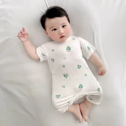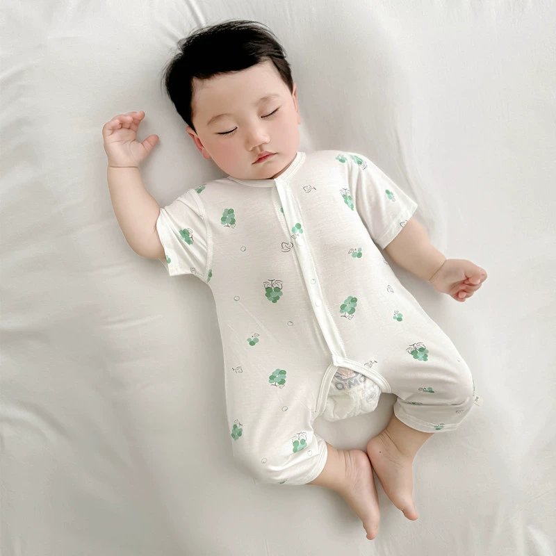 2024 summer baby clothes thin boneless Modal opening conjoined children’s children and female baby short climbing clothes
