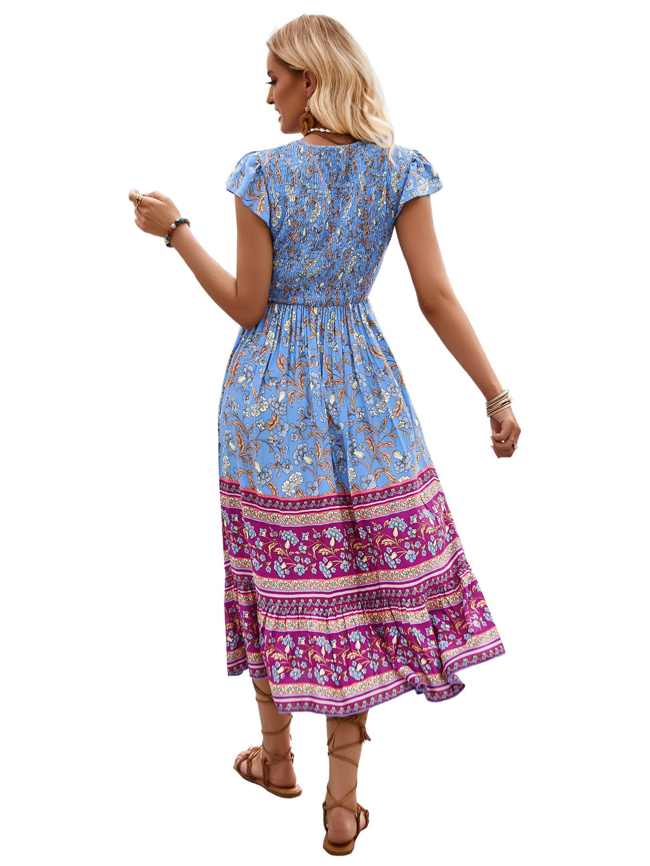 | nameOriginal | 2024 summer casual dress Amazon new printed V-neck flying sleeve bohemian style dress |