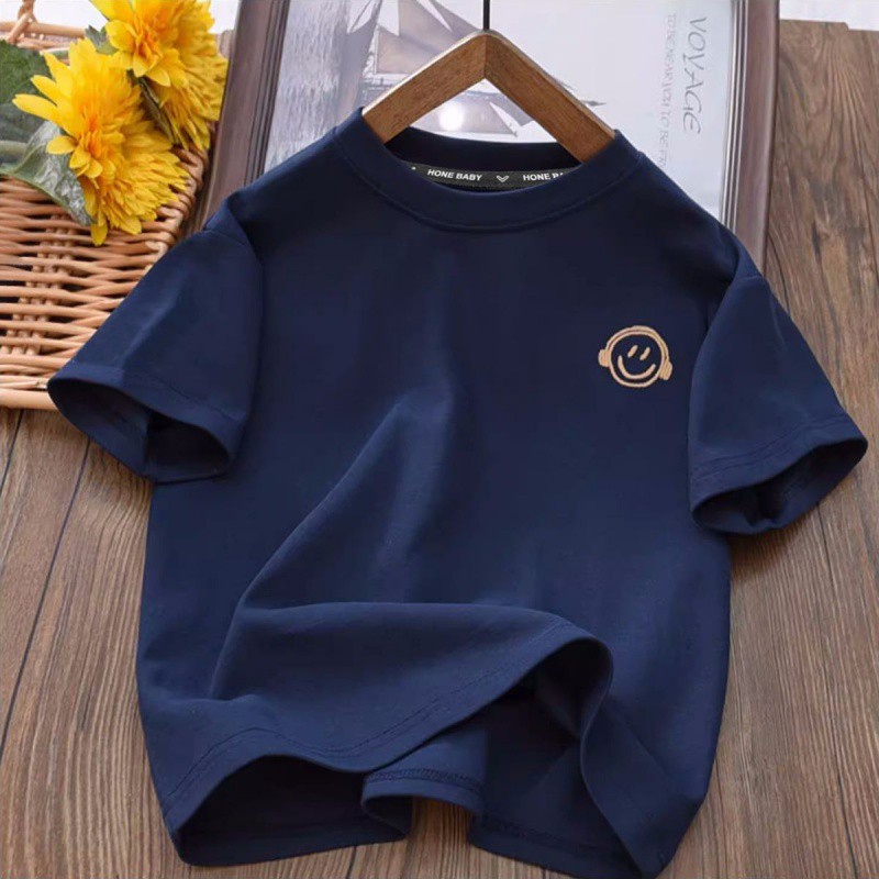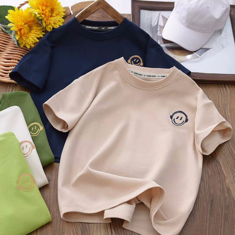 | nameOriginal | 2024 Summer Children's Casual Crewneck Short-sleeved Shirt with Smiley Embroidered Boys' Middle and Big Children's All-match Half-sleeved Top |