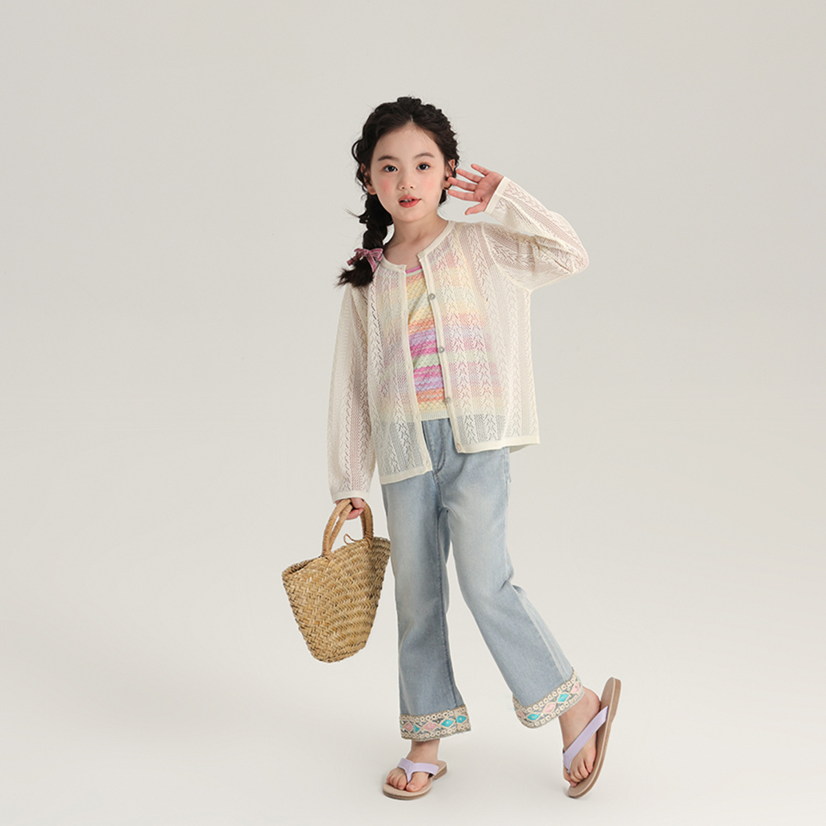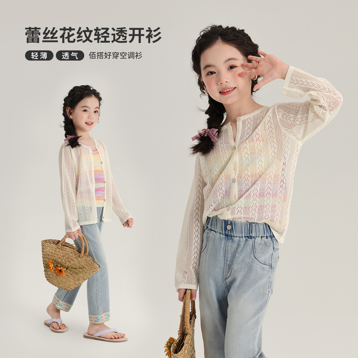 | nameOriginal | 2024 Summer Children's Knitted Cardigan Lace Pattern Breathable Outer Top Single-breasted Girls' Knitted Cardigan |