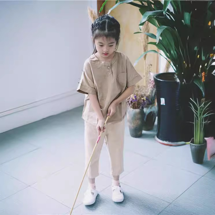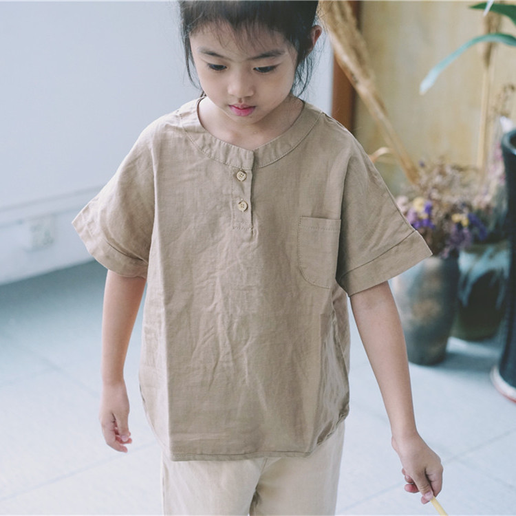 2024 summer children’s shirt Korean-style cotton and linen batwing sleeve doll shirt model Real shot children’s ins style T-shirt
