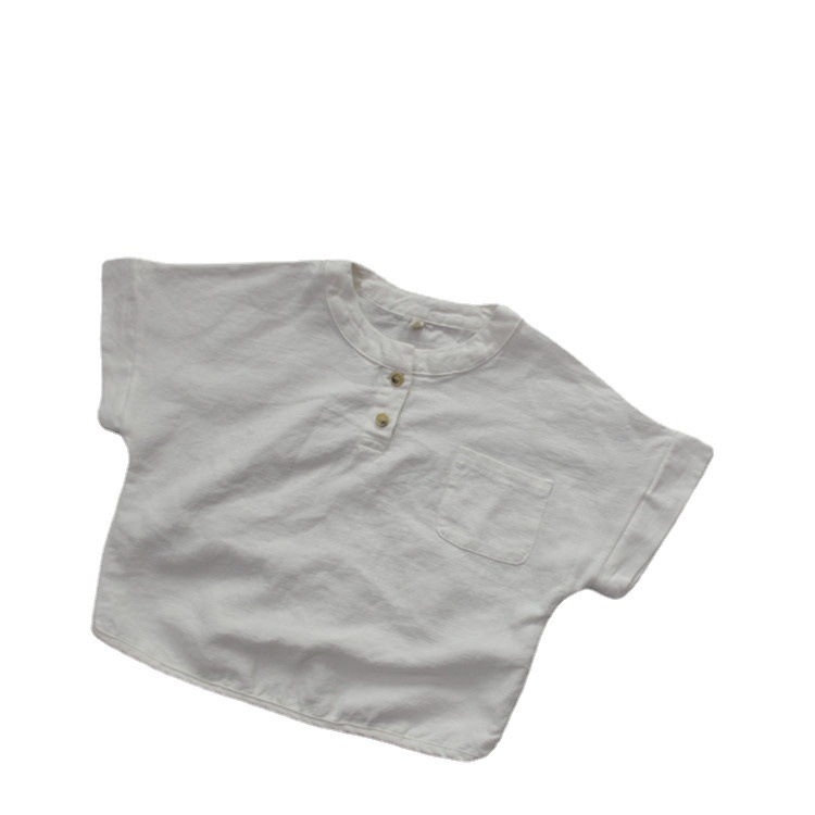 2024 summer children's shirt Korean-style cotton and linen batwing sleeve doll shirt model Real shot children's ins style T-shirt