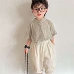 | nameOriginal | 2024 Summer Children's Short-sleeved Shirt Retro Mori Korean Style Vertical Collar Thin Plaid Boys' Short-sleeved Top |