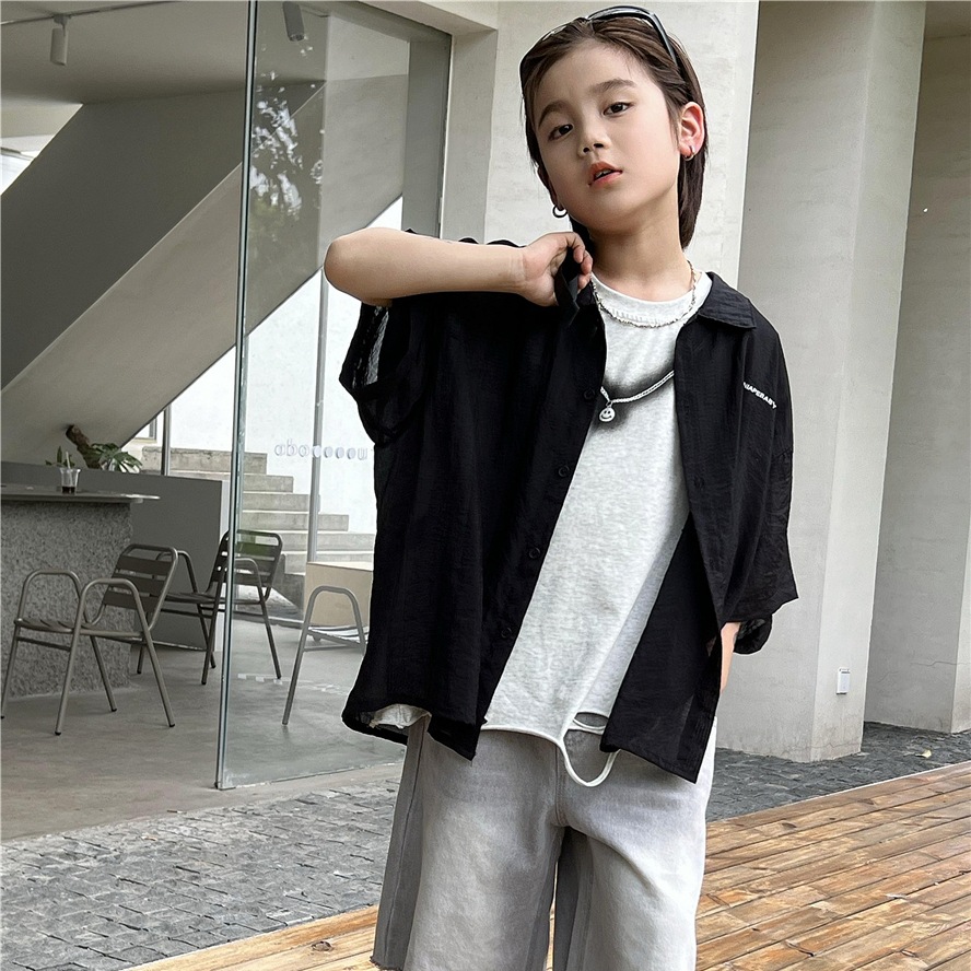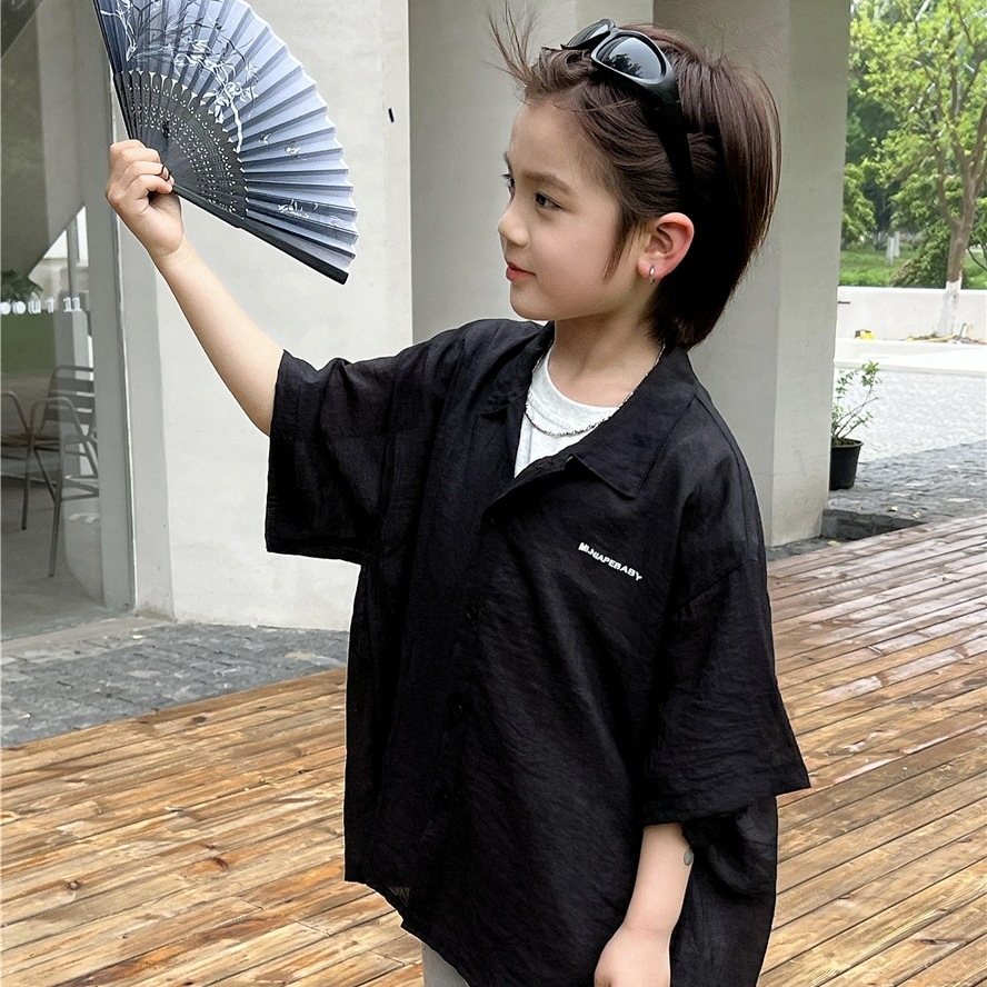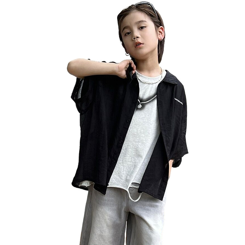 | nameOriginal | 2024 summer children's short-sleeved shirt tulle oversize boys and girls baby short-sleeved sunscreen shirt western style |