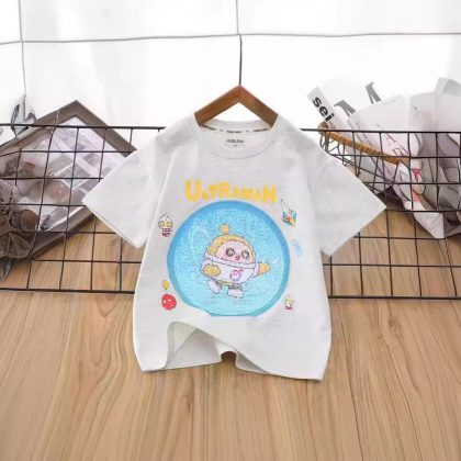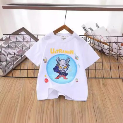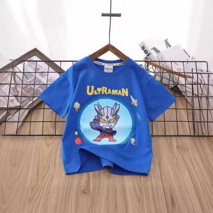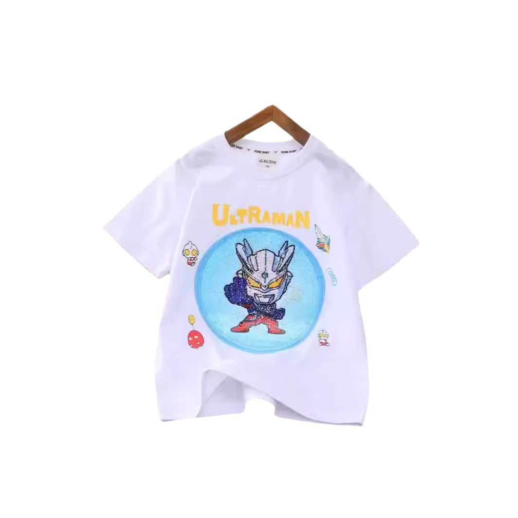 2024 Summer Children's T-shirt New Sequin Color Changing Ultraman Cartoon Round Neck Western Style Short Sleeve Top
