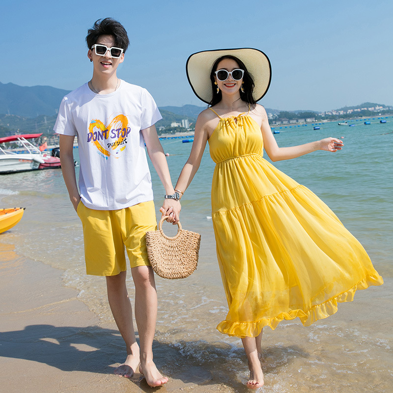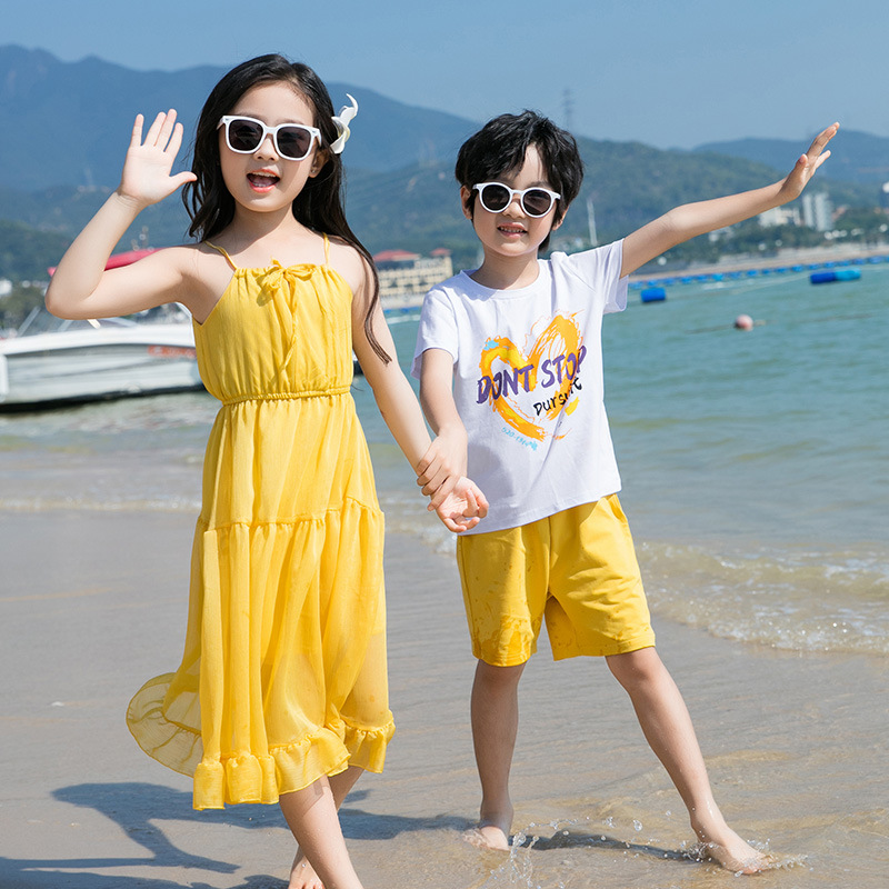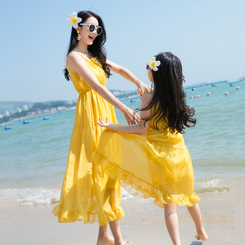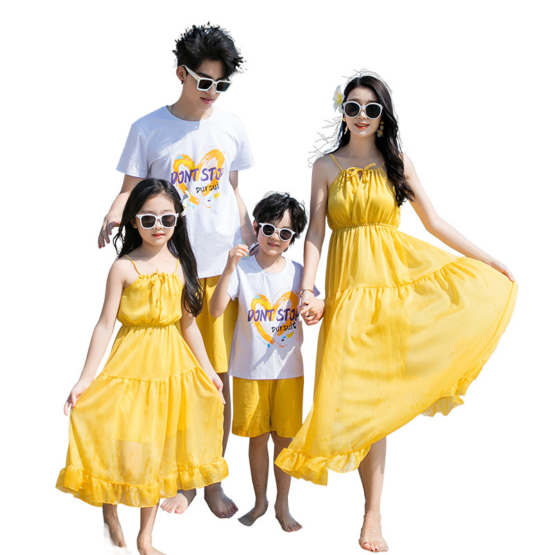 2024 summer clothing seaside beach camping holiday parent-child clothing a family of three full home decoration mother and daughter sling dress