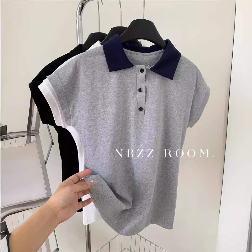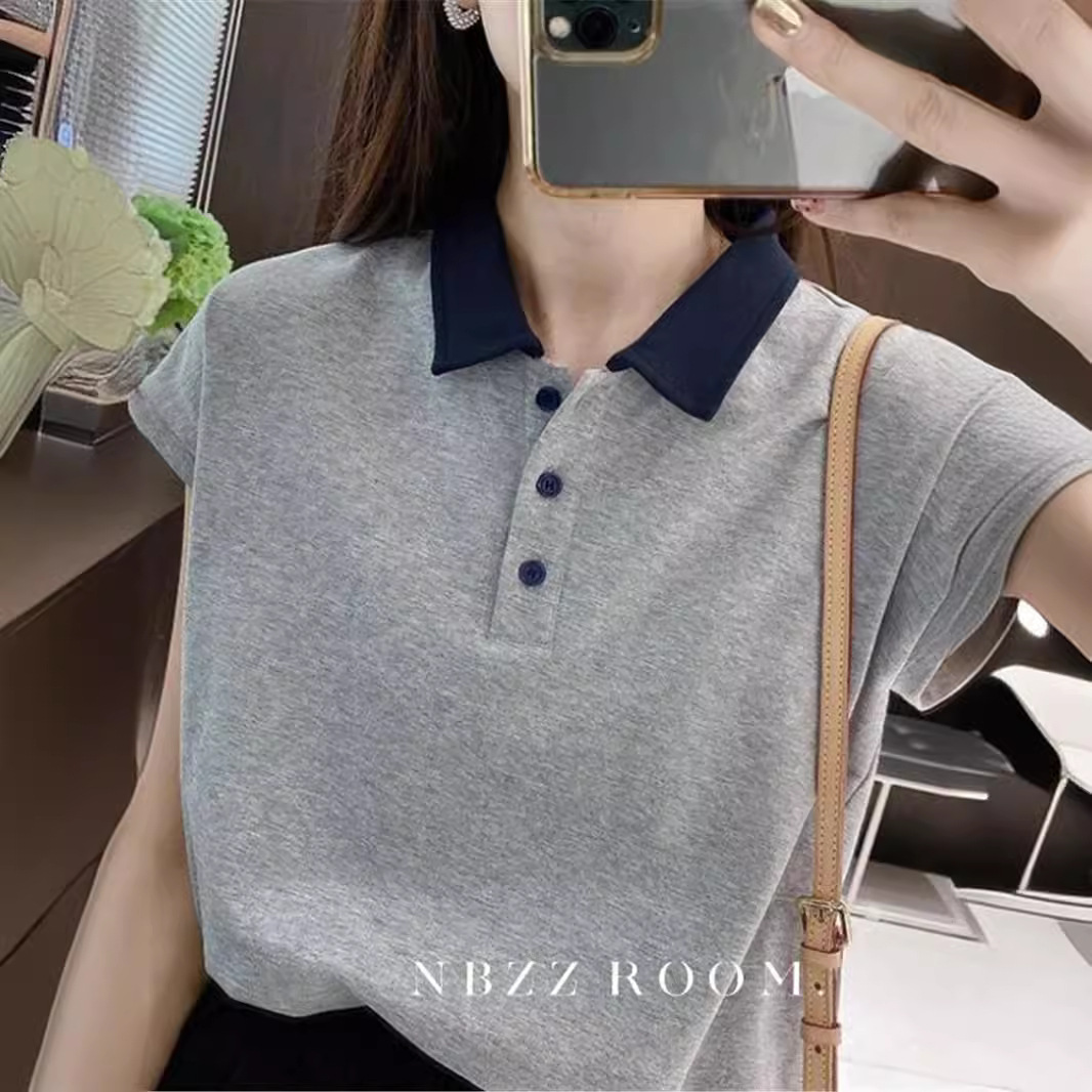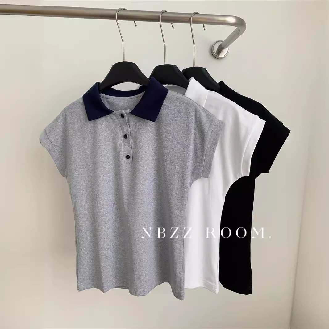 | nameOriginal | 2024 Summer/College Style Shoulder Polo Shirt Button Short-sleeved T-shirt Women's Loose T-shirt All-match Feifei Sleeve Top |
