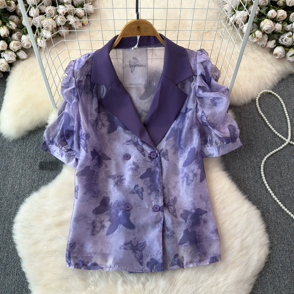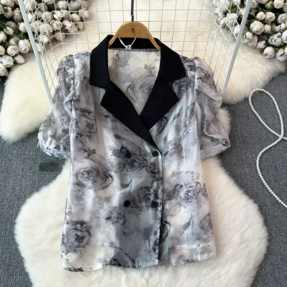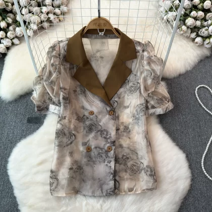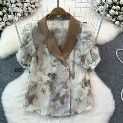 2024 summer French retro niche chic design shirt women’s suit collar loose fashionable temperament sunscreen