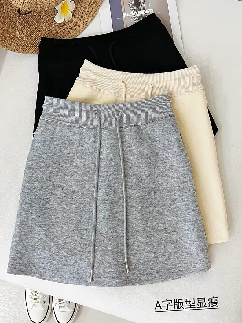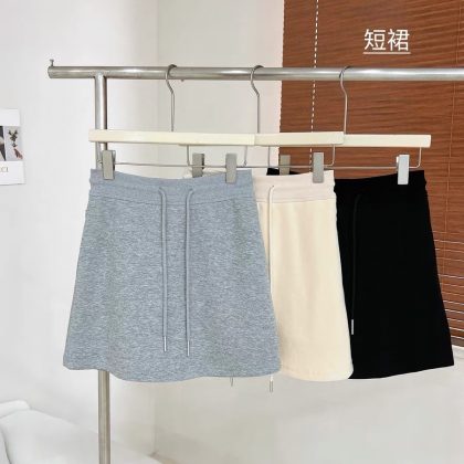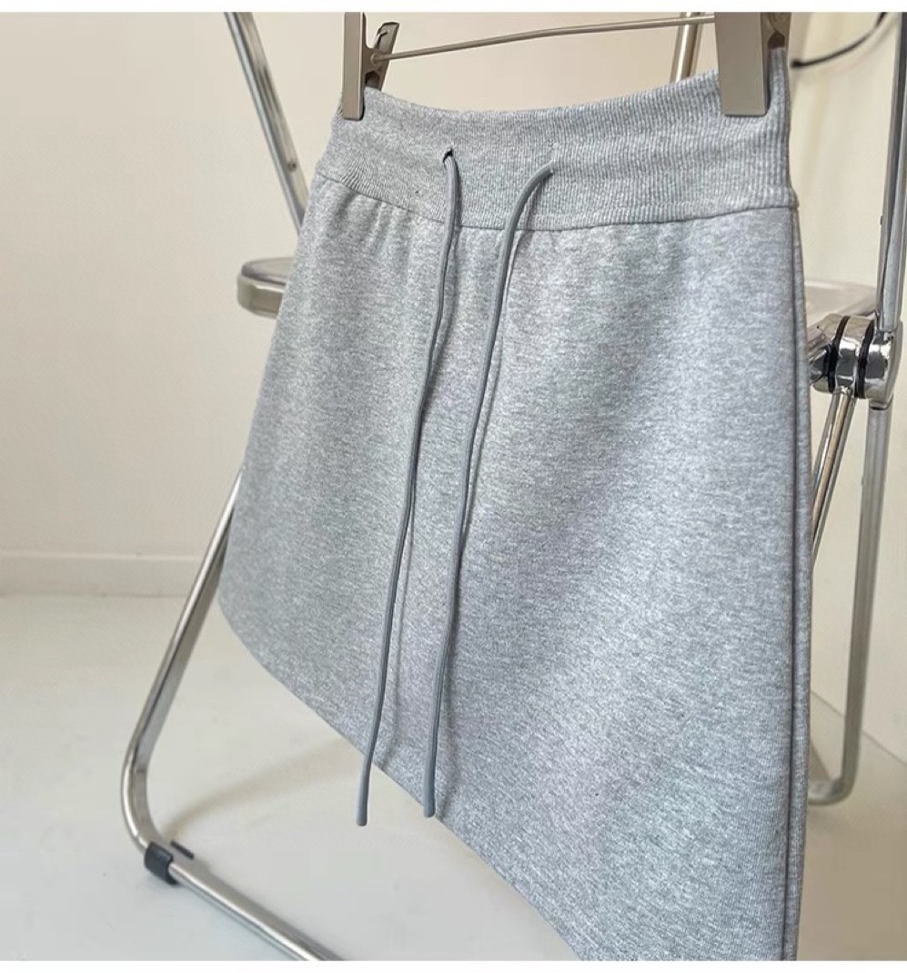| nameOriginal | 2024 summer gray skirt women 24 new spring and summer elastic waist drawstring embroidery thin sports skirt |
