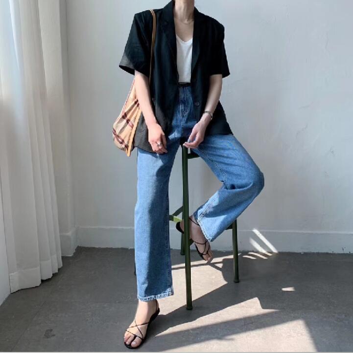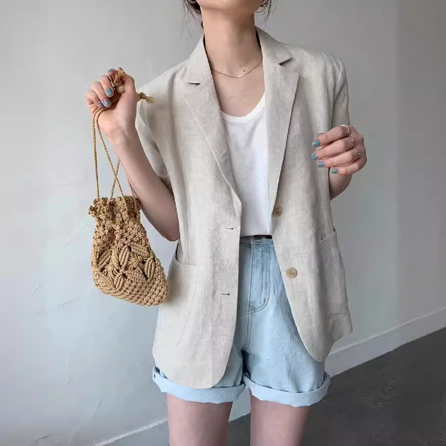 2024 Summer Korean Dongdaemun Women’s New Cotton and Linen Short-sleeved Black and White All-match Suit Loose Casual Jacket Trendy
