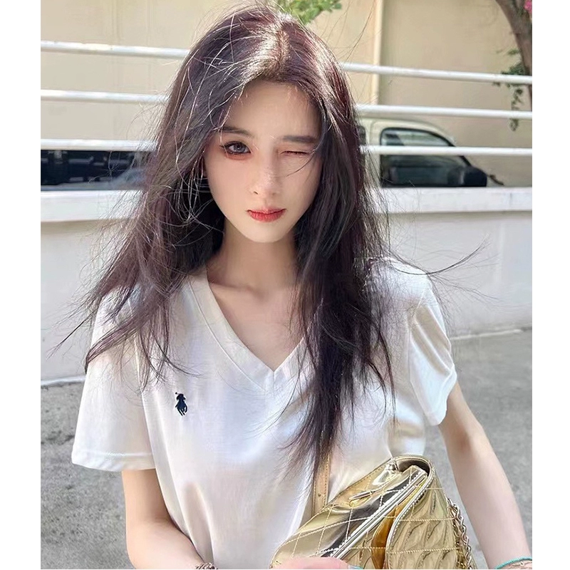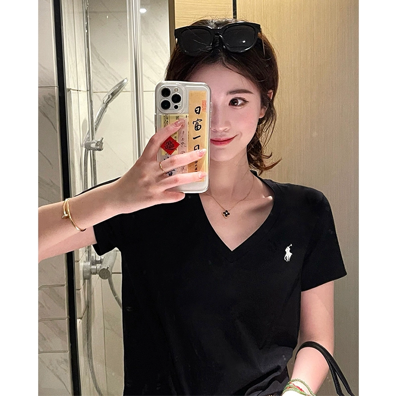 | nameOriginal | 2024 Summer Loose New Style Versatile Commuting Pony Embroidery Simple Top Solid Color Slim V-Neck Short Sleeve T-Shirt |