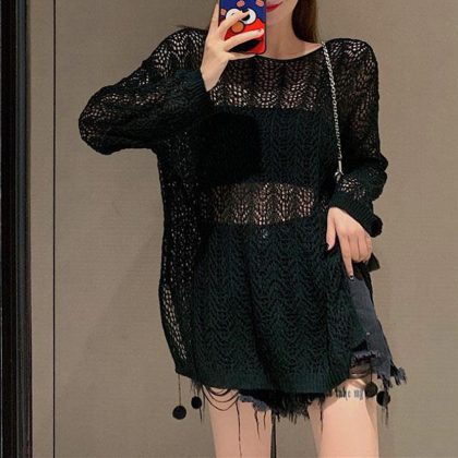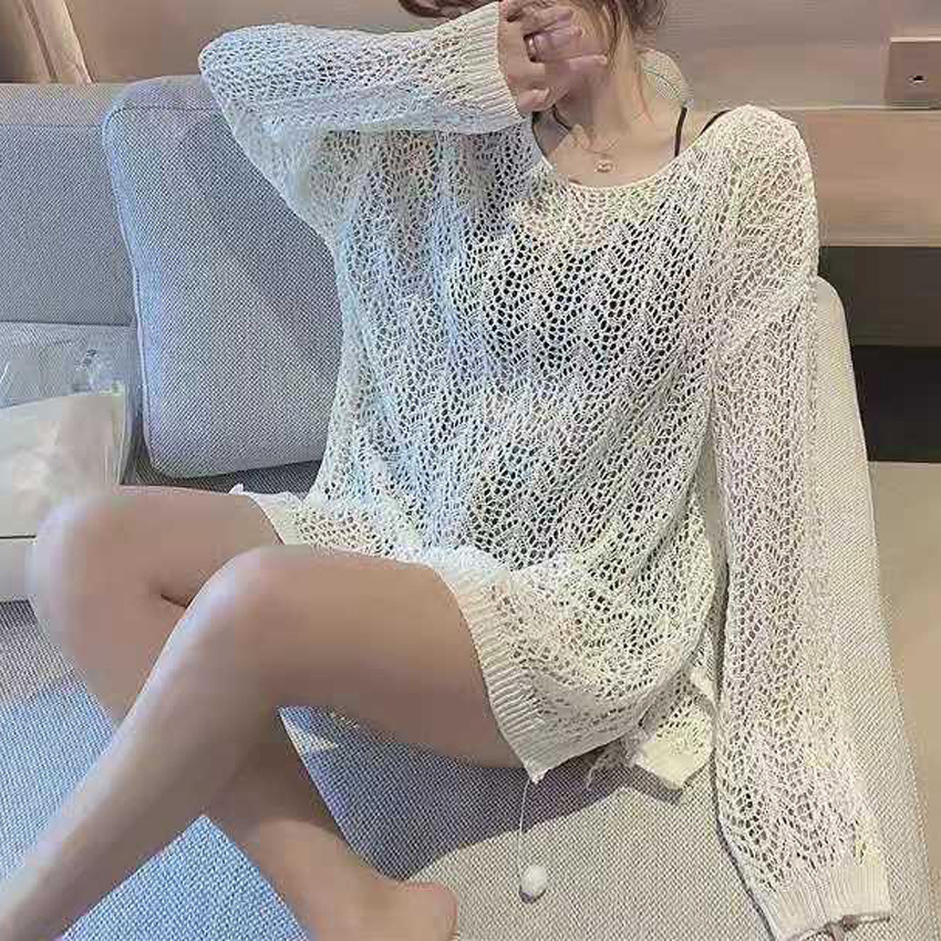 | nameOriginal | 2024 Summer Loose Thin Lazy Style Long-sleeved Sunscreen Knitted Blouse Hollow Thin Top for Women |