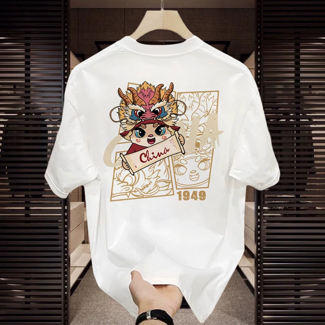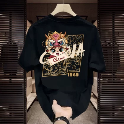 2024 summer new men’s pure cotton short-sleeved T-shirt black body slim fit handsome high-end short-sleeved T-shirt men