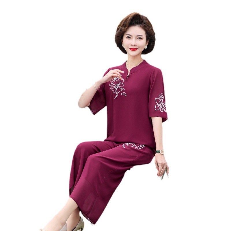 2024 Summer Middle-aged Mother's Day New plus size Loose Breathable Light Luxury Fashionable Elegant Two-piece Set
