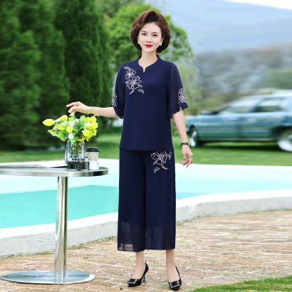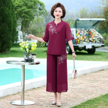 2024 Summer Middle-aged Mother’s Day New plus size Loose Breathable Light Luxury Fashionable Elegant Two-piece Set