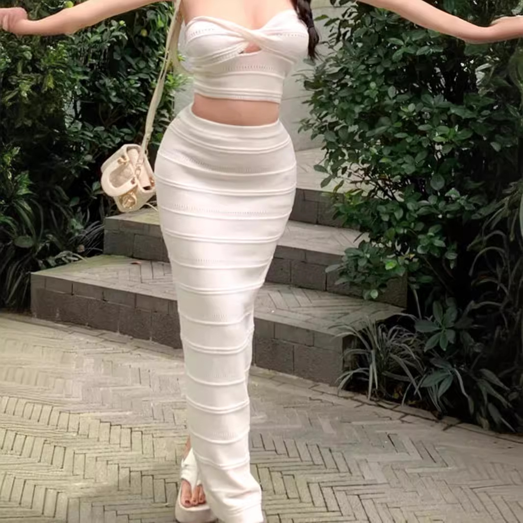 | nameOriginal | 2024 Summer Middle Ancient Love Song Holiday Style Slim-fit Pure Desire Knitted Skirt Short Kink Tube Top Two-piece Suit |