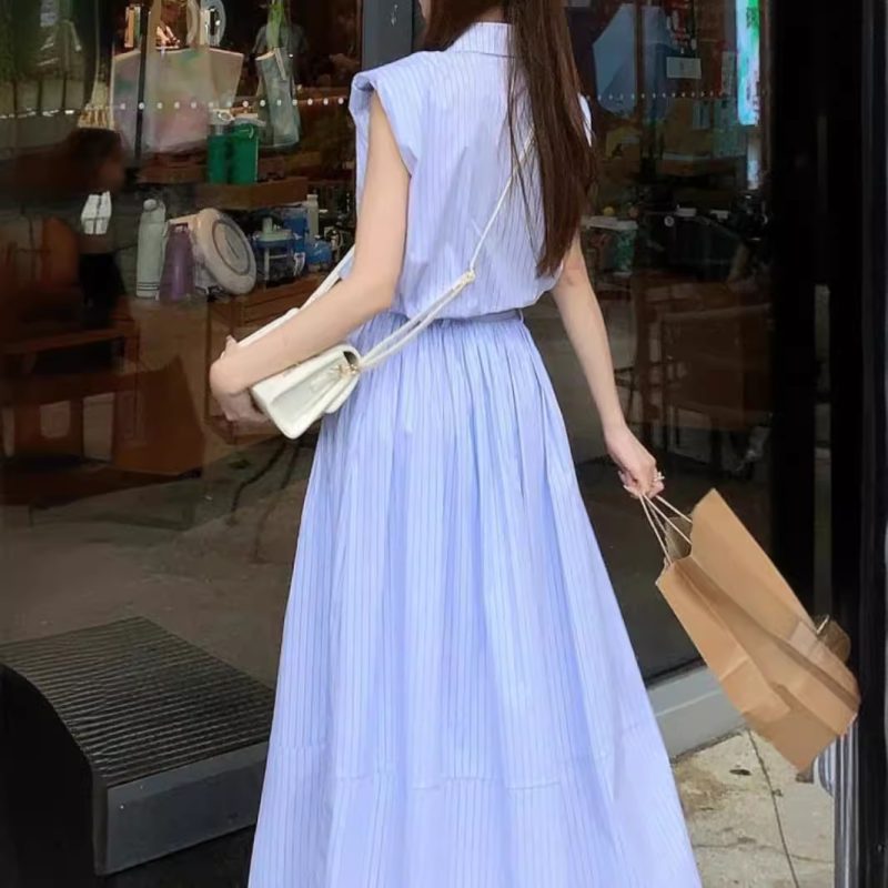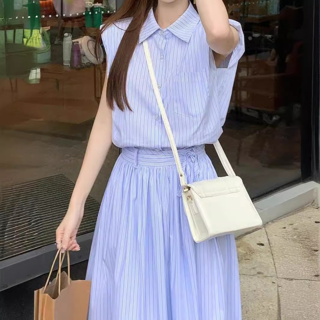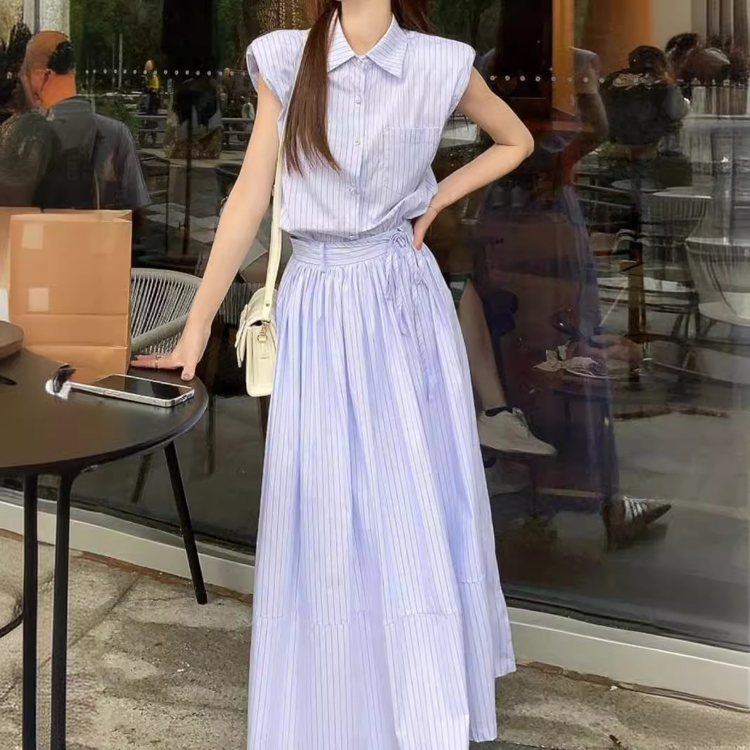 | nameOriginal | 2024 Summer Midsummer Sea Breeze Striped Shirt Skirt Two-Piece Set Academy Style Temperament suit Women |