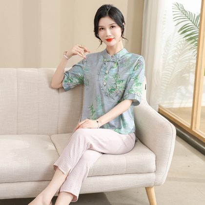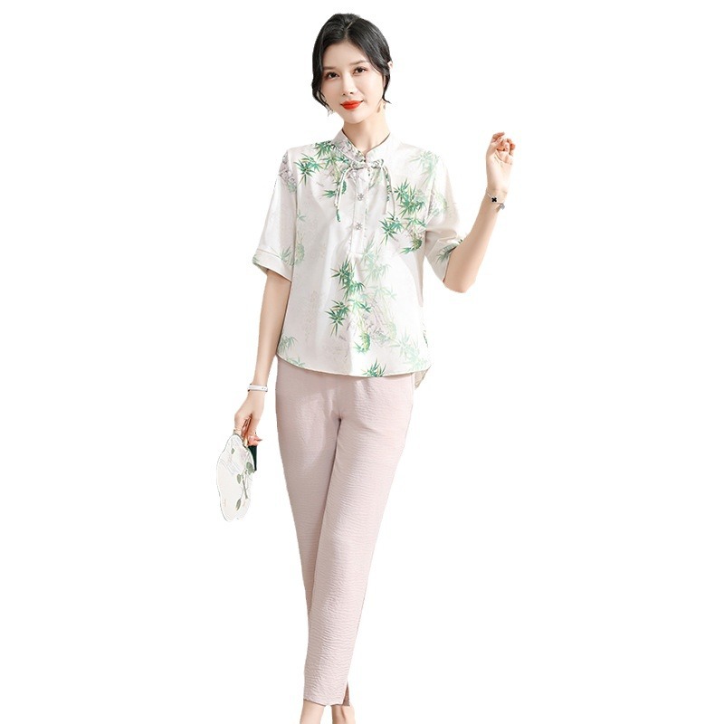 | nameOriginal | 2024 Summer Mother's Chiffon Top Two-piece New Fashionable Western Style Middle-aged and Elderly Bottoming Shirt suit |