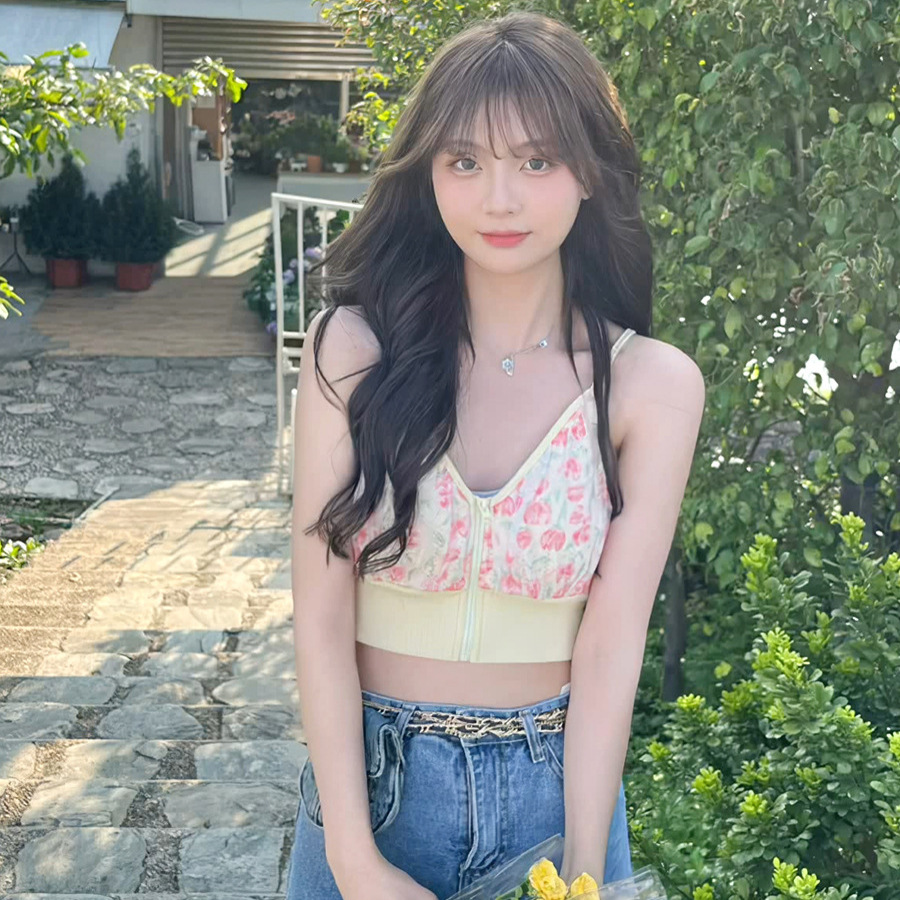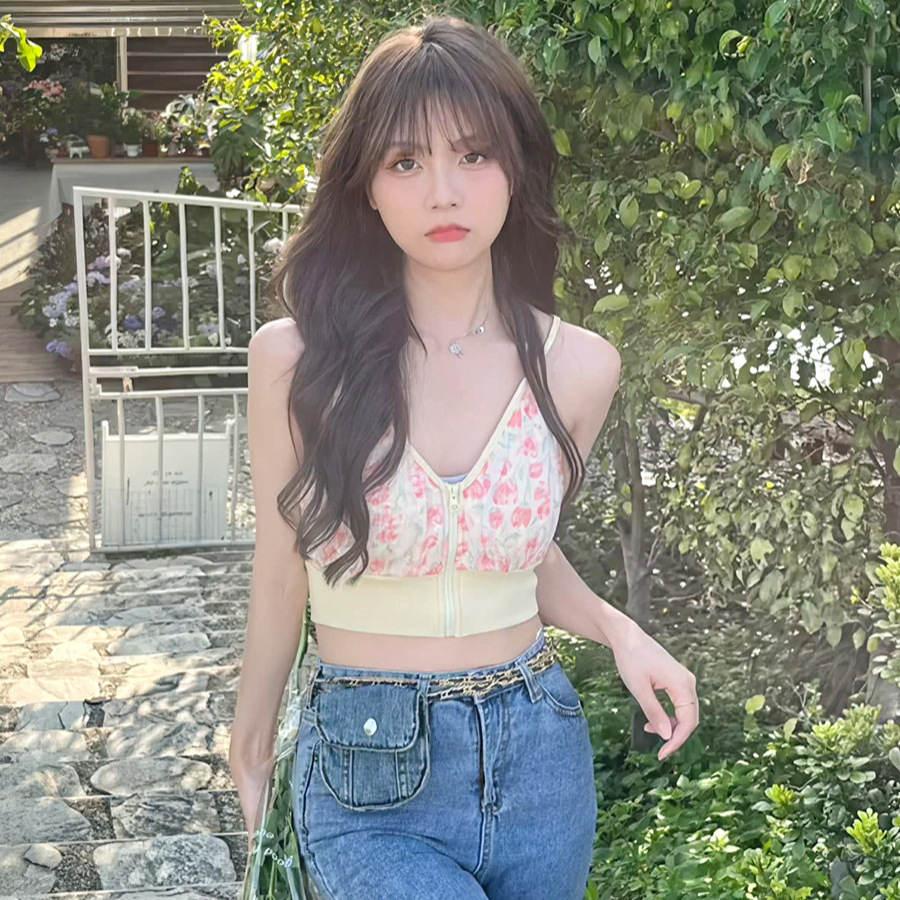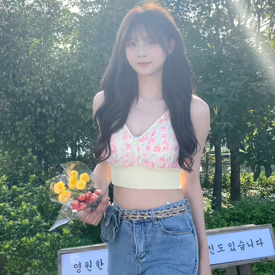 | nameOriginal | 2024 Summer New All-match Slim-fit Short Chest Pad Sling Small Vest Korean Style Pure Floral Base Top for Women |