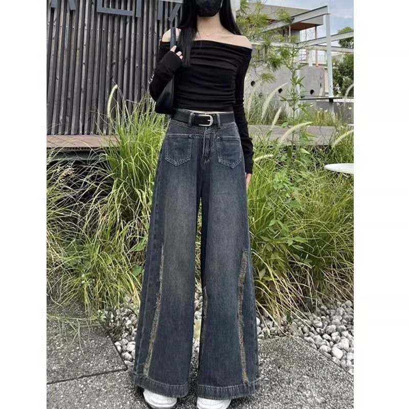 | nameOriginal | 2024 Summer New American Style Retro Washed Old Jeans Women's Casual Design Loose Slimming Wide Leg Pants |