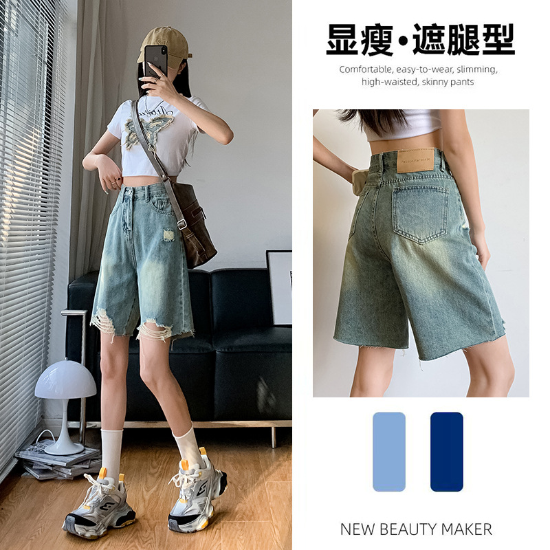 | nameOriginal | 2024 Summer New Arrival Five-point Denim Shorts Women's High Waist Straight Nostalgic Blue Casual All-match |