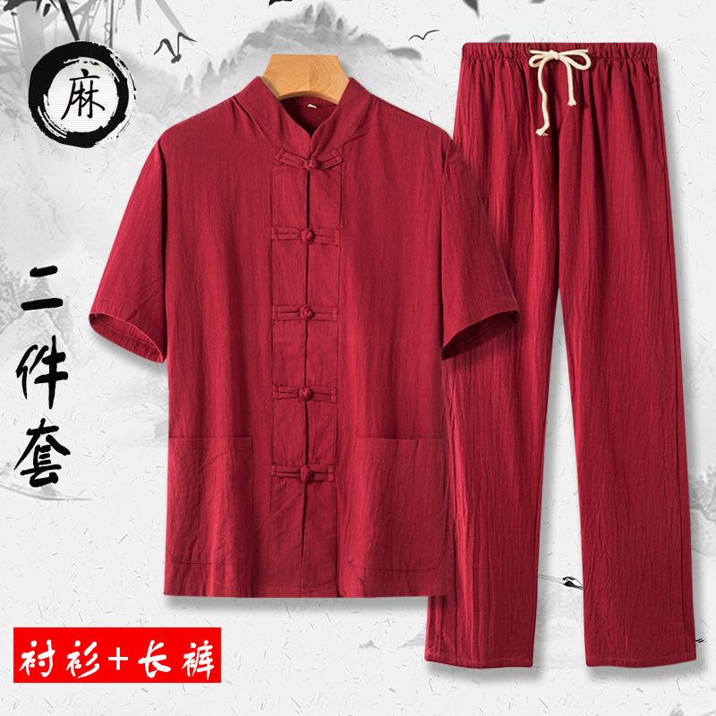 | nameOriginal | 2024 Summer New Arrival Short-sleeved Trousers suit Chinese-style Hanfu Tang Suit Cotton and Linen Retro Collar Casual Two-piece Set |